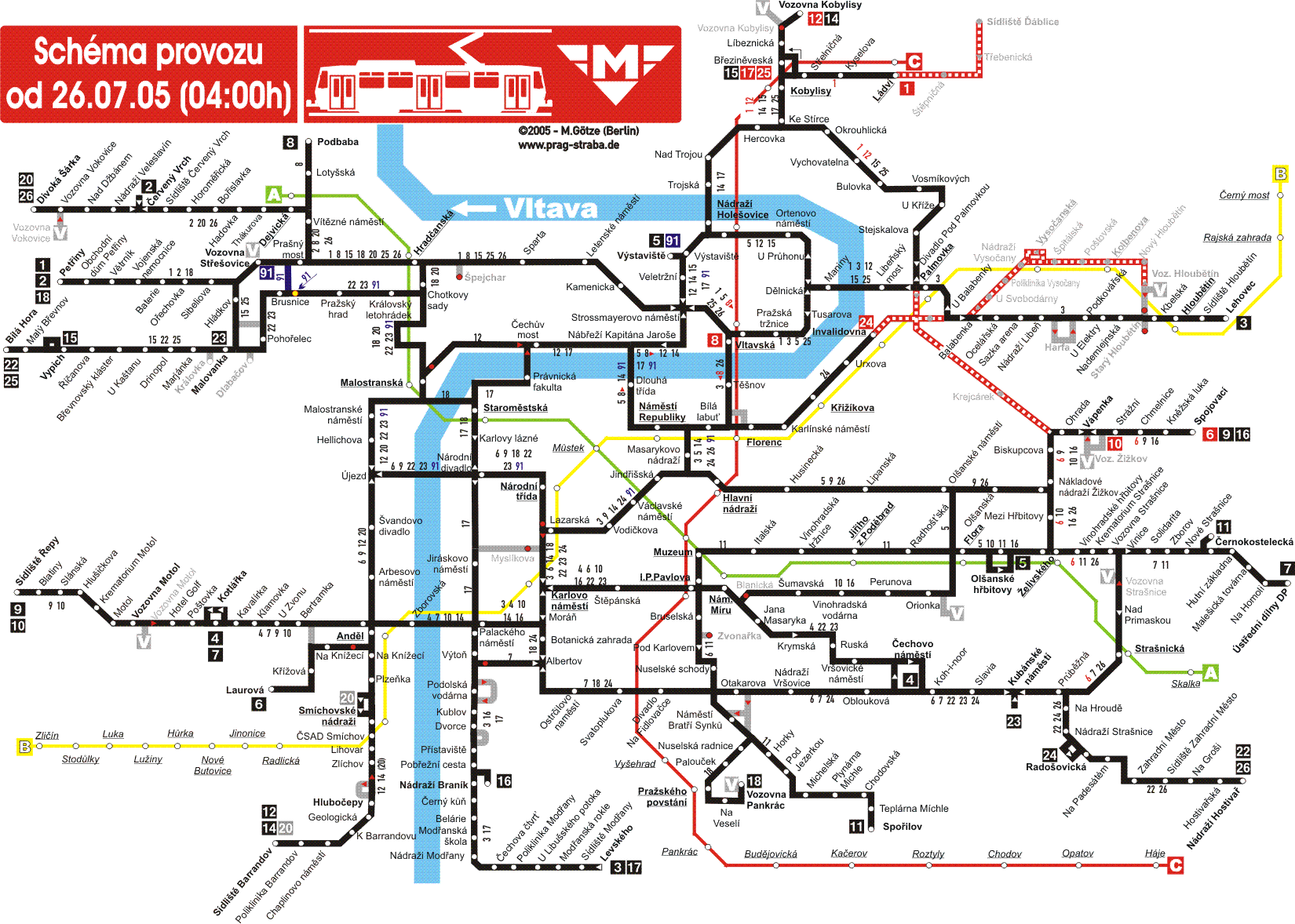 | Vluky tramvajovch trat pokraujc 26. ervence 2005: |