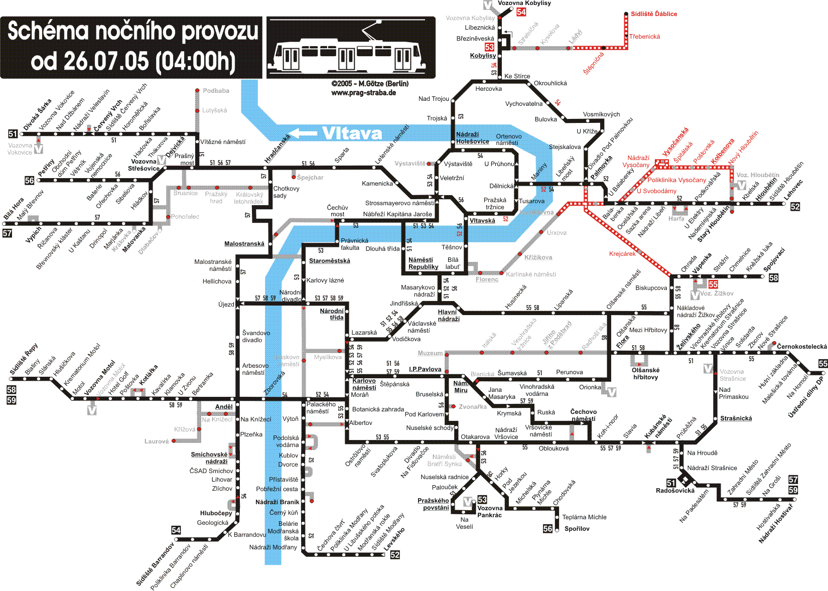 | Vluky tramvajovch trat zahjen 26. ervence 2005: |