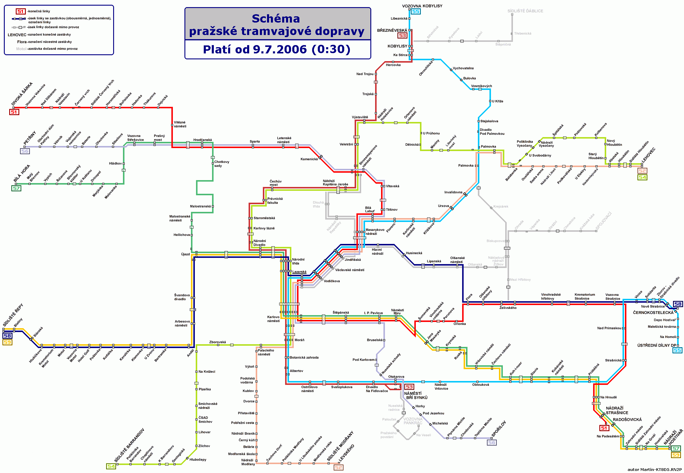 Vluky tramvajovch trat zahjen 8. ervence 2006 |