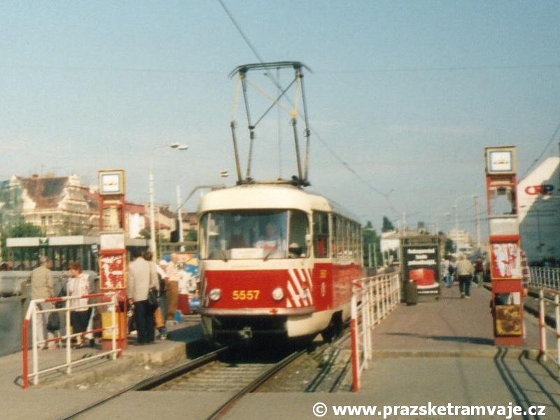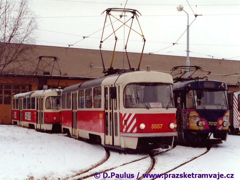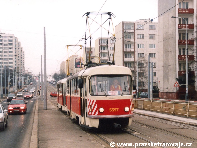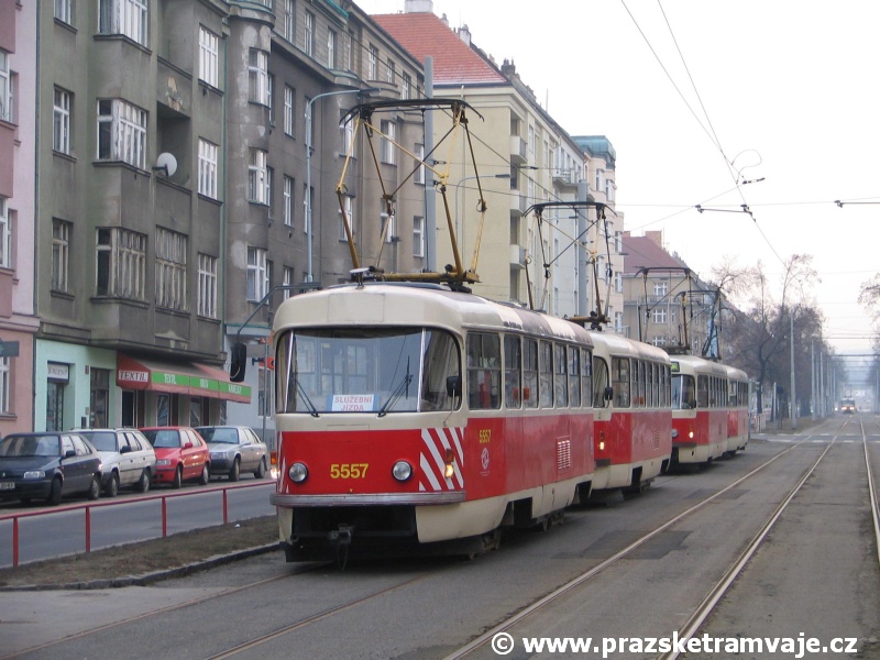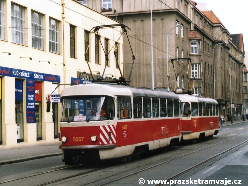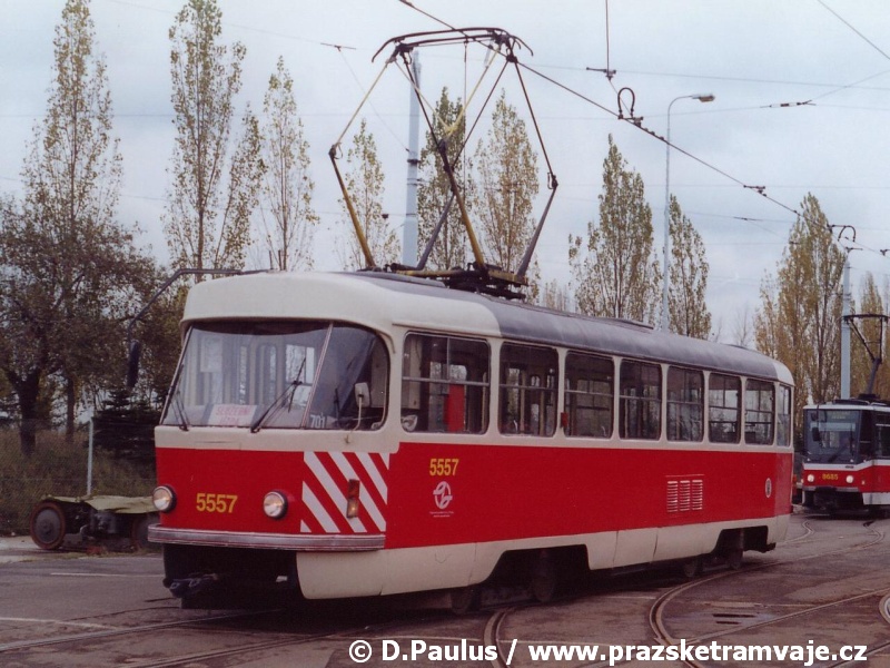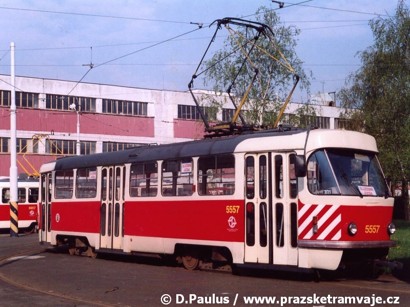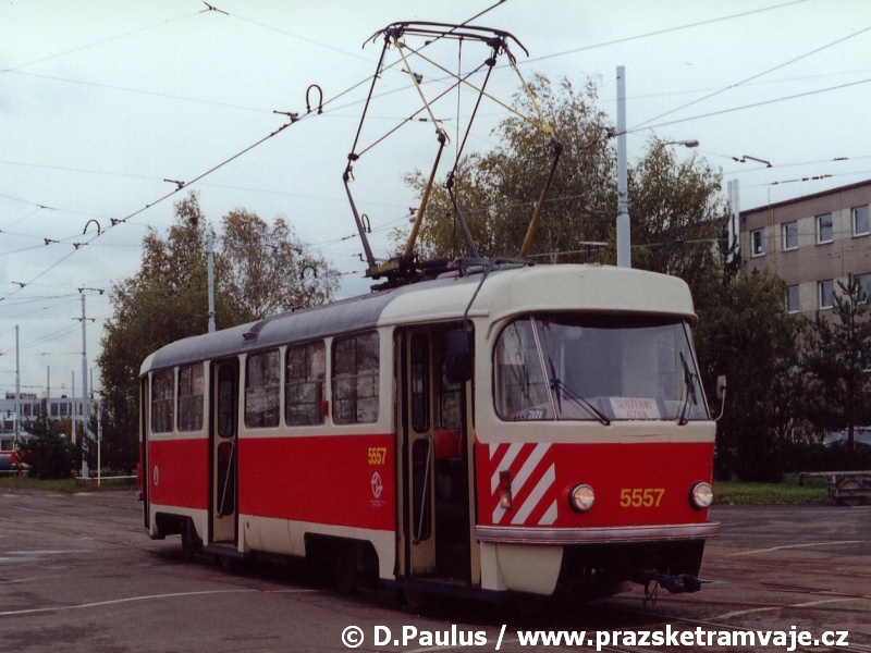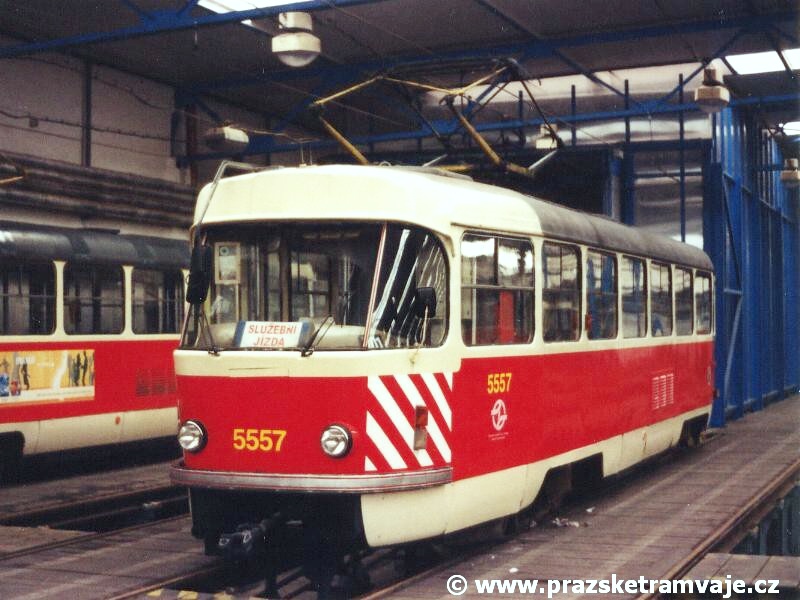 bílých bezpečnostních pruhů na čelech vozů. Výjimku tvoří vůz ev.č.5557, u kterého došlo k odstranění vnějších kolejniček pro osazení linkové