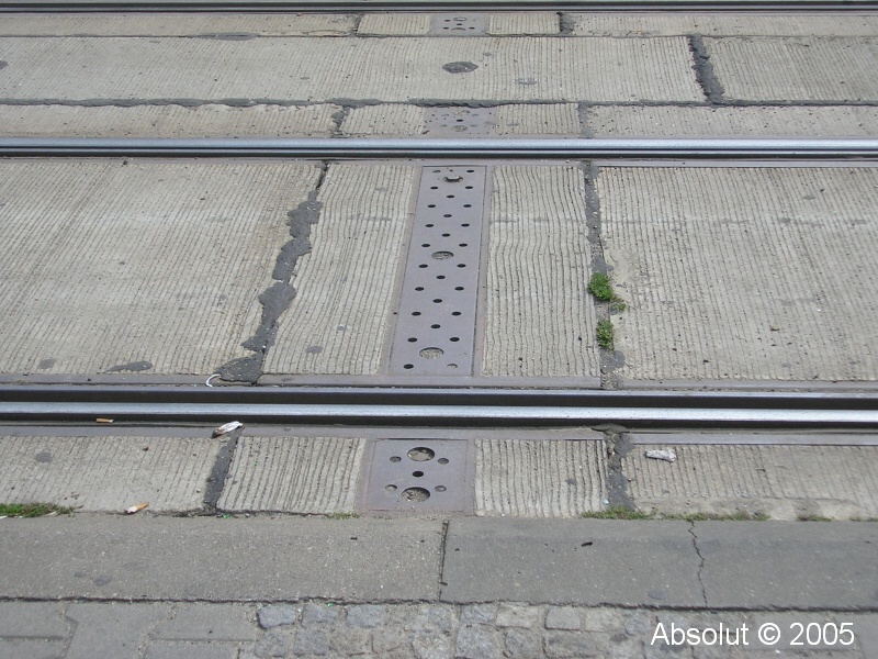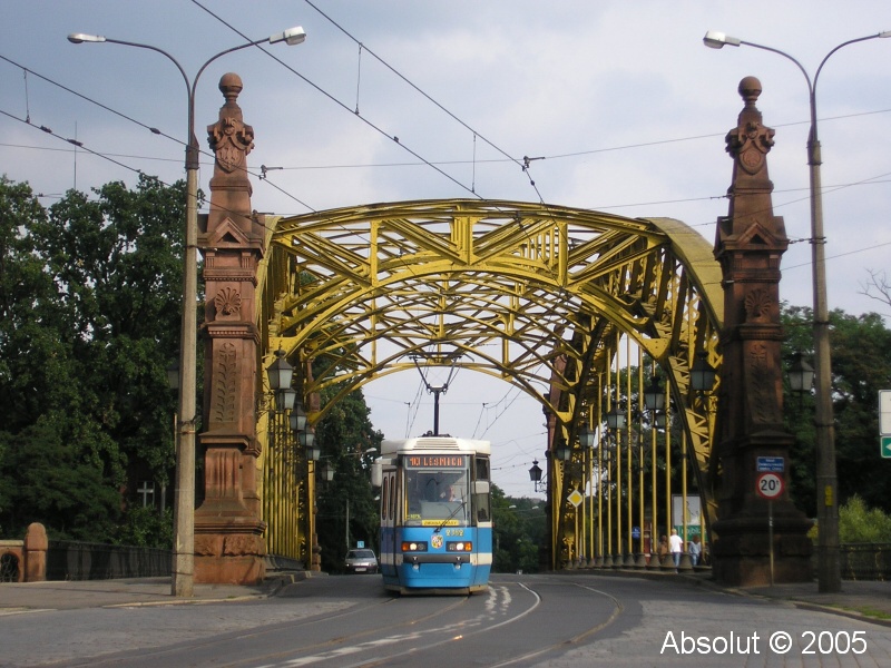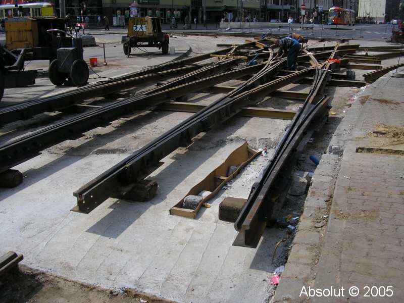 Polské město Wroclaw v létě 2005Koleje, po kterých bude brzy jezdit tramvaj Škoda 16T