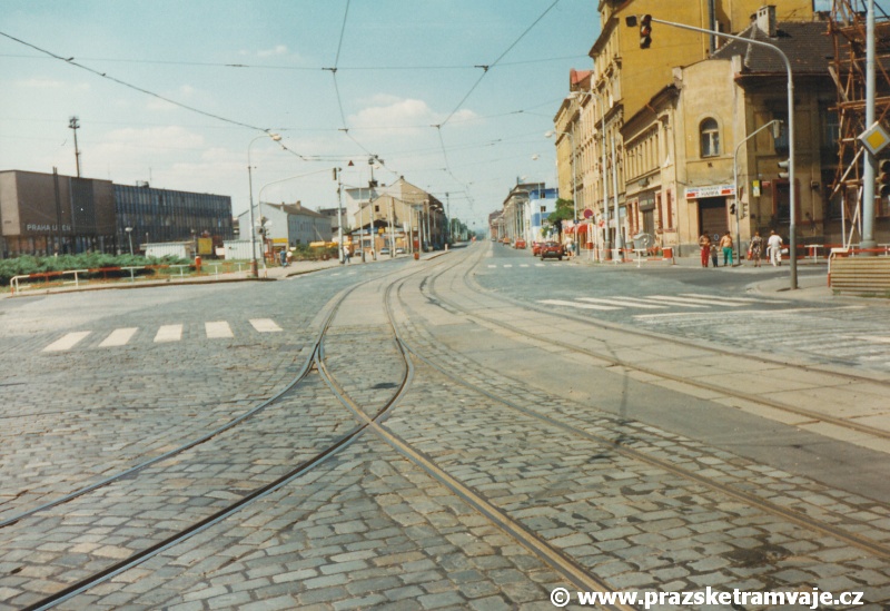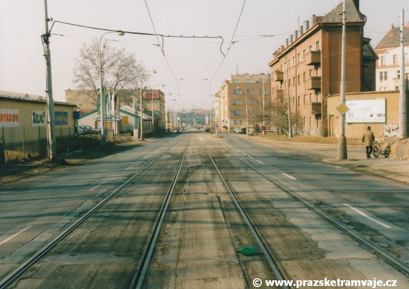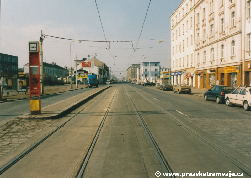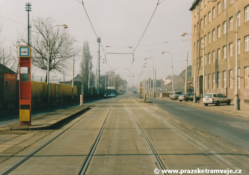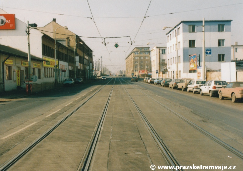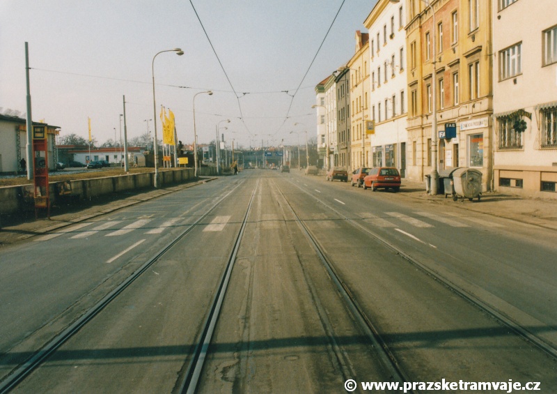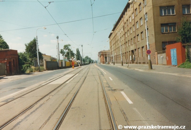 Cestu po nyní již neexistující podobě tramvajové trati začneme na křižovatce Českomoravské a Freyovy ulice s ulicí K Žižkovu, poblíž smyčky Harfa. Trať se za křižovatkou v pravém oblouku dostala do středu zde ještě poměrně široké vozovky Českomoravské ulice a v protisměru byl umístěn nástupní ostrůvek zastávky Harfa. Pokračovala stále středem Českomoravské ulice, ale za odbavovací halou nádraží Praha - Libeň se šířka ulice značně zmenšila, na což reagovala také tramvajová trať. Kolejovým esíčkem nejprve odbočila vlevo a následně se pravým obloukem opět srovnala do středu ulice. Zde byl umístěn nástupní ostrůvek zastávky Mostárna z centra, vystřídaný o několik metrů dále nástupním ostrůvkem stejnojmenné zastávky do centra. V již značně stísněných podmínkách trať pokračovala podél areálu někdejšího ČKD po pravé straně a odstavných kolejí nádraží Praha - Libeň po straně levé. U budov ČKD byla pod atypickým přístřeškem umístěna zastávka Lokomotivka do centra, v protisměru umístěná zastávka byla sice - oproti své protisměrné kolegyni - vybavena typickým socialistickým přístřeškem, jenže ten se ukrýval za křovím v moři špíny a odpadků. Společnost mu dělala výtažná kolej nádraží Praha - Libeň. Obě zastávky byly navíc umístěny na přilehlých chodnících a řidiči automobilů je tak ve většině případů ignorovali. Trať pak pokračovala přímým úsekem a mezi vyústěním ulic Kurta Konráda a Ocelářská byl umístěn nástupní ostrůvek zastávky Ocelářská do centra. Nebyl vlastně dlouhý ani na jednu soupravu, protože pokud řidič zastavil předpisově u zastávkového sloupku, tak u soupravy vozů T6A5 byly poslední dveře mimo ostrůvek. Protisměrná zastávka byla umístěna o kus dále na chodníku, zhruba mezi vyústěním ulic Drahobejlovy a Ocelářské. Trať za křižovatkou s Drahobejlovou ulicí prudce změnila směr. Levým obloukem se dostala do středu upravené a rozšířené komunikace, na vlastní zvýšené těleso. Až ke křižovatce s ulicí Sokolovskou pokračovala v táhlém pravém oblouku, v němž byla umístěna zastávka Balabenka, přiléhající ke stejnojmenné křižovatce.
