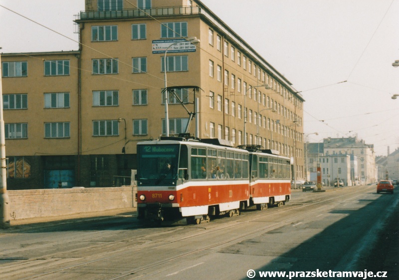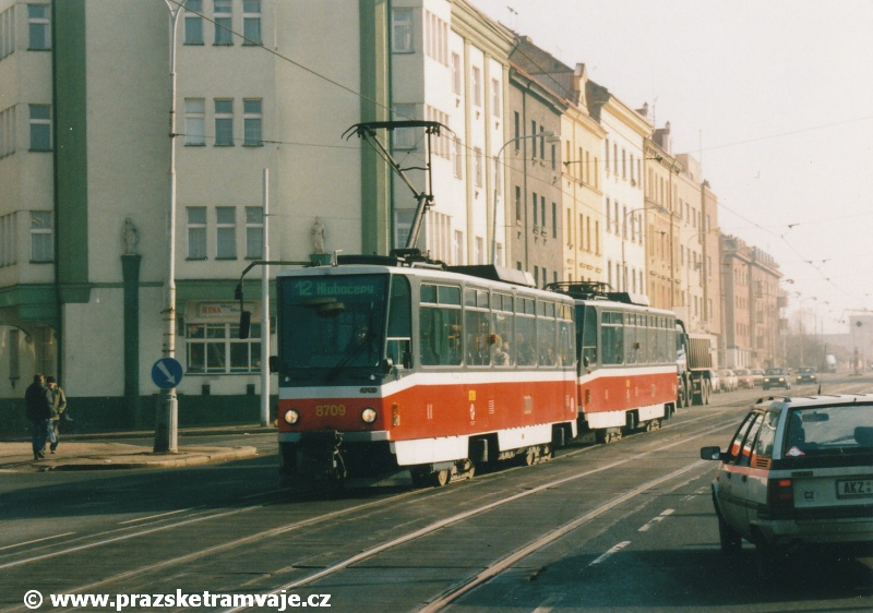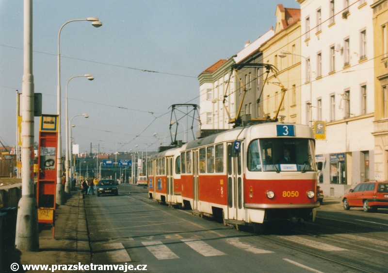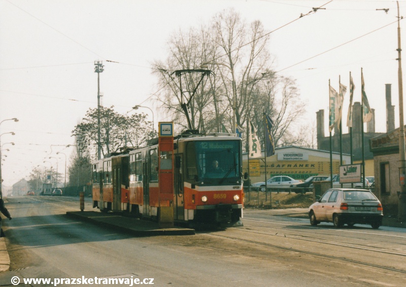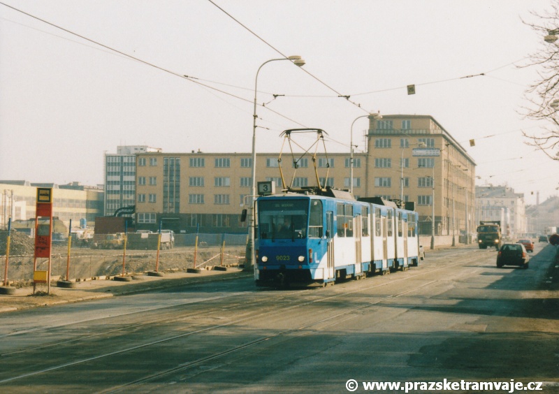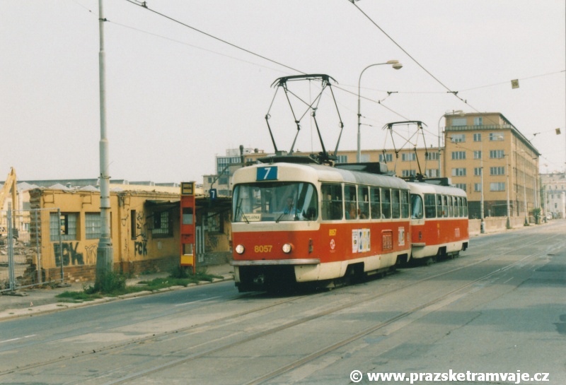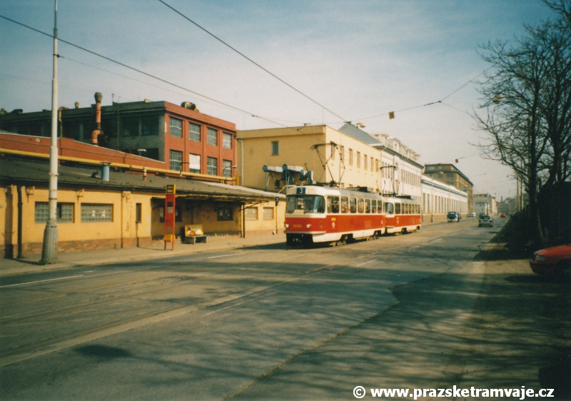 Cestu po nyní již neexistující podobě tramvajové trati začneme na křižovatce Českomoravské a Freyovy ulice s ulicí K Žižkovu, poblíž smyčky Harfa. Trať se za křižovatkou v pravém oblouku dostala do středu zde ještě poměrně široké vozovky Českomoravské ulice a v protisměru byl umístěn nástupní ostrůvek zastávky Harfa. Pokračovala stále středem Českomoravské ulice, ale za odbavovací halou nádraží Praha - Libeň se šířka ulice značně zmenšila, na což reagovala také tramvajová trať. Kolejovým esíčkem nejprve odbočila vlevo a následně se pravým obloukem opět srovnala do středu ulice. Zde byl umístěn nástupní ostrůvek zastávky Mostárna z centra, vystřídaný o několik metrů dále nástupním ostrůvkem stejnojmenné zastávky do centra. V již značně stísněných podmínkách trať pokračovala podél areálu někdejšího ČKD po pravé straně a odstavných kolejí nádraží Praha - Libeň po straně levé. U budov ČKD byla pod atypickým přístřeškem umístěna zastávka Lokomotivka do centra, v protisměru umístěná zastávka byla sice - oproti své protisměrné kolegyni - vybavena typickým socialistickým přístřeškem, jenže ten se ukrýval za křovím v moři špíny a odpadků. Společnost mu dělala výtažná kolej nádraží Praha - Libeň. Obě zastávky byly navíc umístěny na přilehlých chodnících a řidiči automobilů je tak ve většině případů ignorovali. Trať pak pokračovala přímým úsekem a mezi vyústěním ulic Kurta Konráda a Ocelářská byl umístěn nástupní ostrůvek zastávky Ocelářská do centra. Nebyl vlastně dlouhý ani na jednu soupravu, protože pokud řidič zastavil předpisově u zastávkového sloupku, tak u soupravy vozů T6A5 byly poslední dveře mimo ostrůvek. Protisměrná zastávka byla umístěna o kus dále na chodníku, zhruba mezi vyústěním ulic Drahobejlovy a Ocelářské. Trať za křižovatkou s Drahobejlovou ulicí prudce změnila směr. Levým obloukem se dostala do středu upravené a rozšířené komunikace, na vlastní zvýšené těleso. Až ke křižovatce s ulicí Sokolovskou pokračovala v táhlém pravém oblouku, v němž byla umístěna zastávka Balabenka, přiléhající ke stejnojmenné křižovatce.