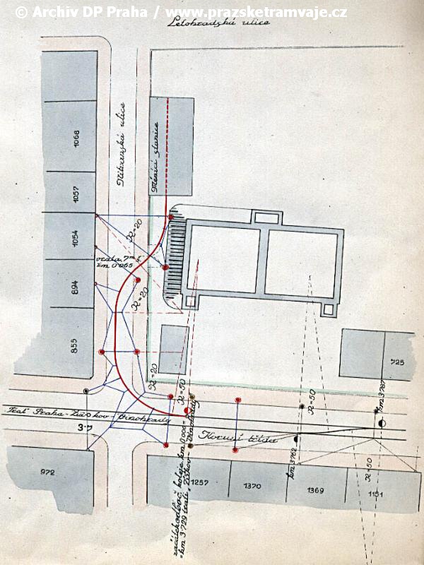 do ulice Nitranské. Původní kolej (dokončená 28. října 1924) vedla do budovy rozvodny od severu z dnešní Nitranské ulice, i když se to dnes