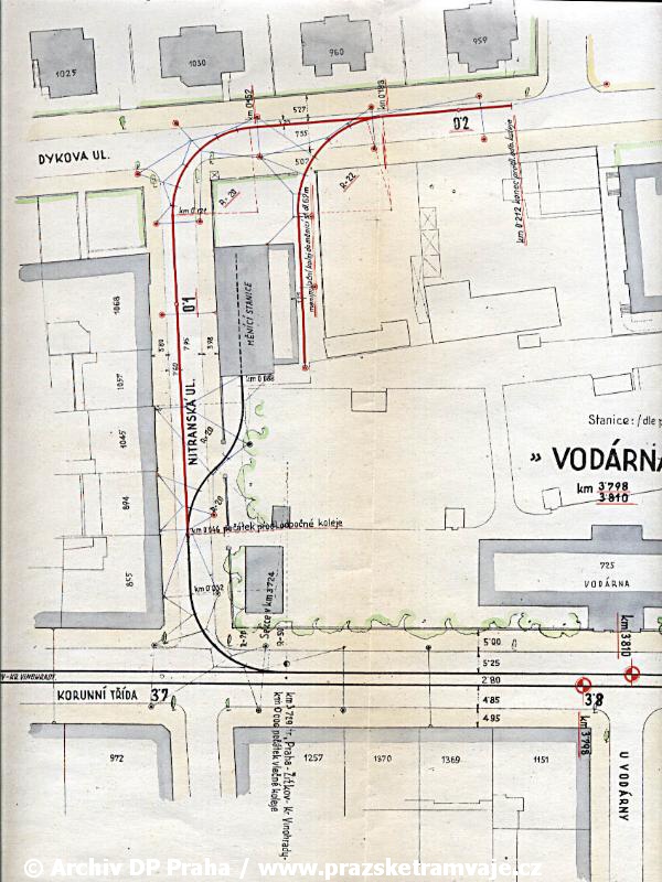 V blízkosti tramvajové zastávky Vinohradská vodárna najdeme jednoho z nenápadných svědků pražské tramvajové minulosti. V Nitranské a Dykově ulici totiž zůstal v dlažbě zachován