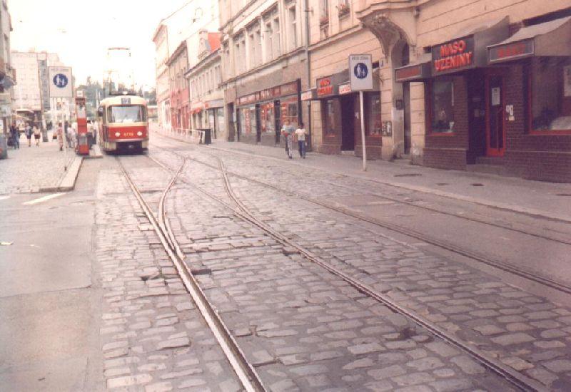 od 17. května do 15. června 2000 byl snesen. Přejezd byl klasické konstrukce, kryt tvořila žulová dlažba a výhybky byly s čepovými jazyky.