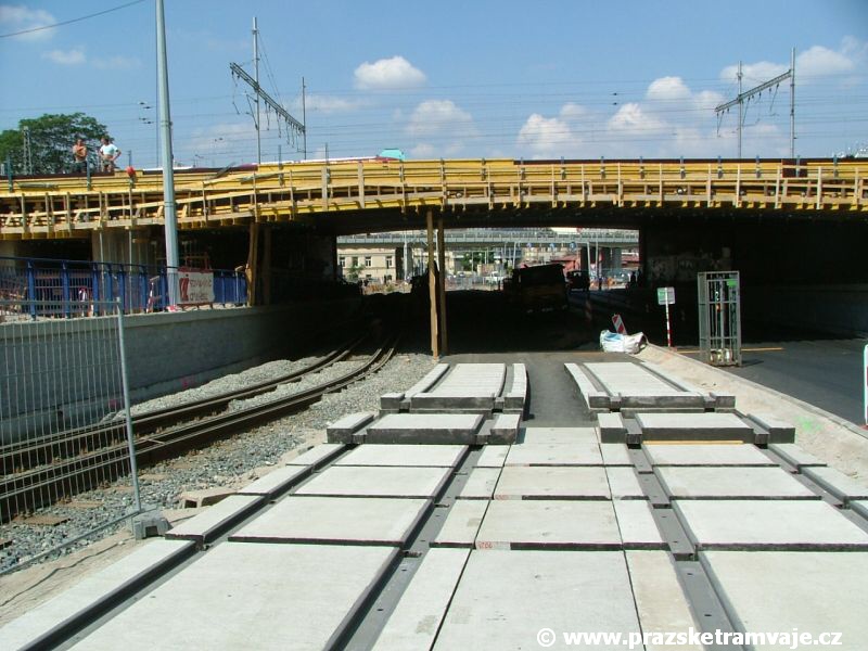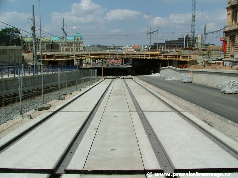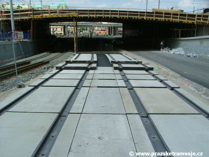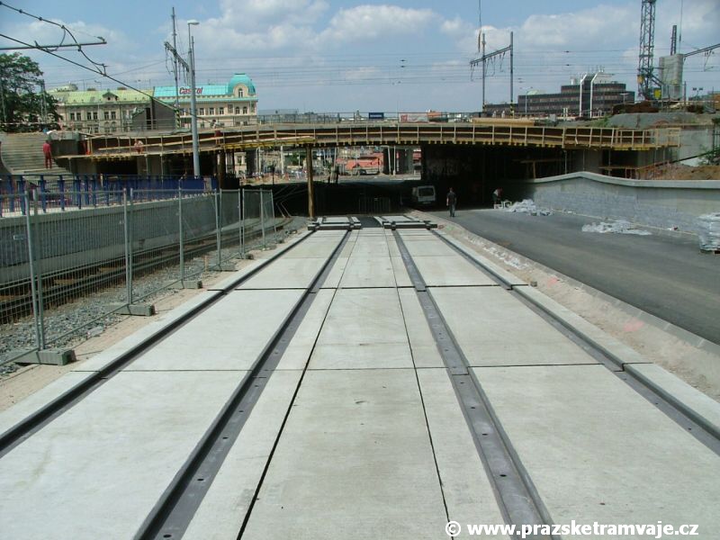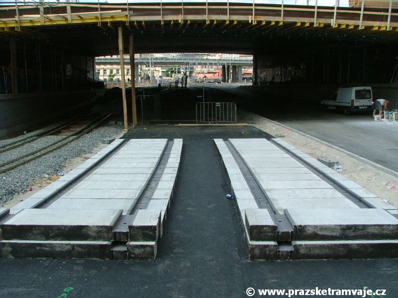 k přeložení tramvajové tratě pod železničními mosty do konečné polohy ve středu vozovky