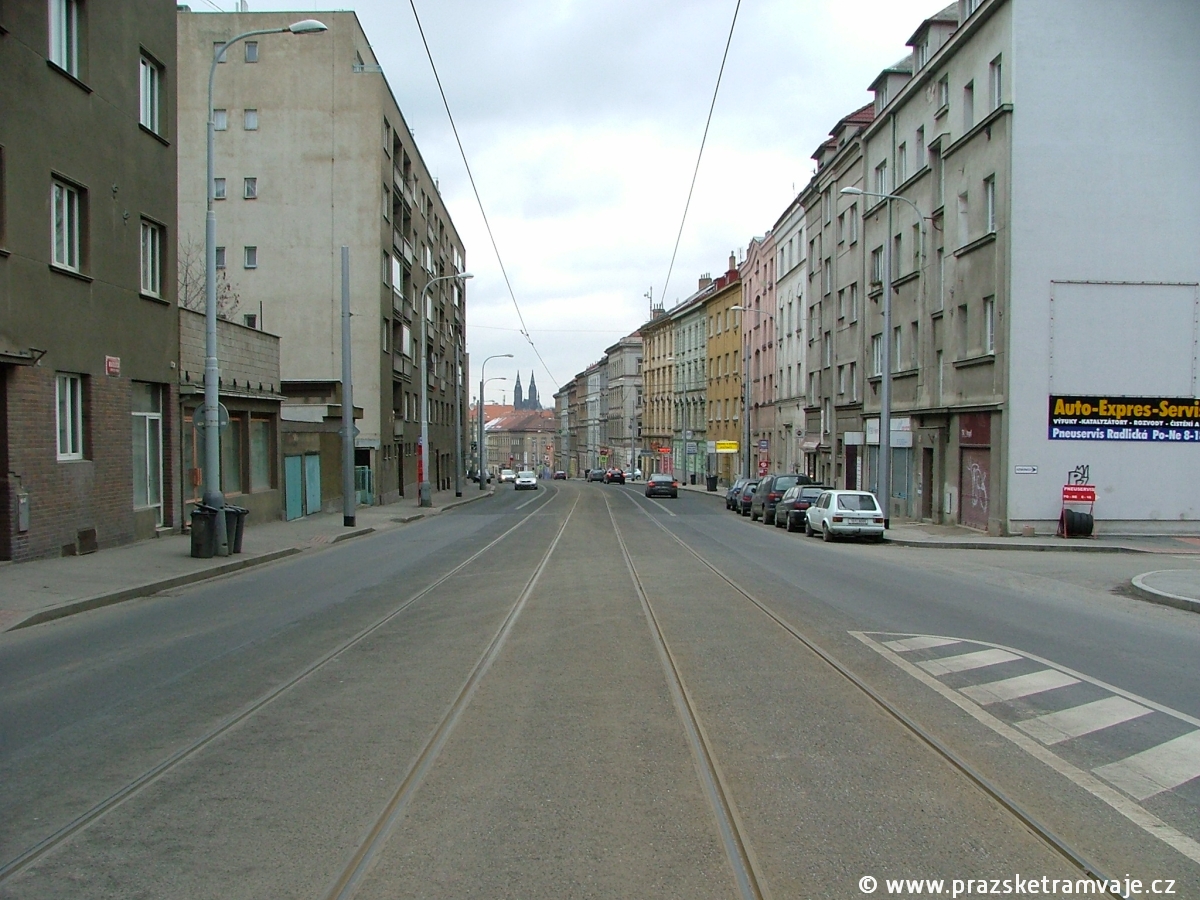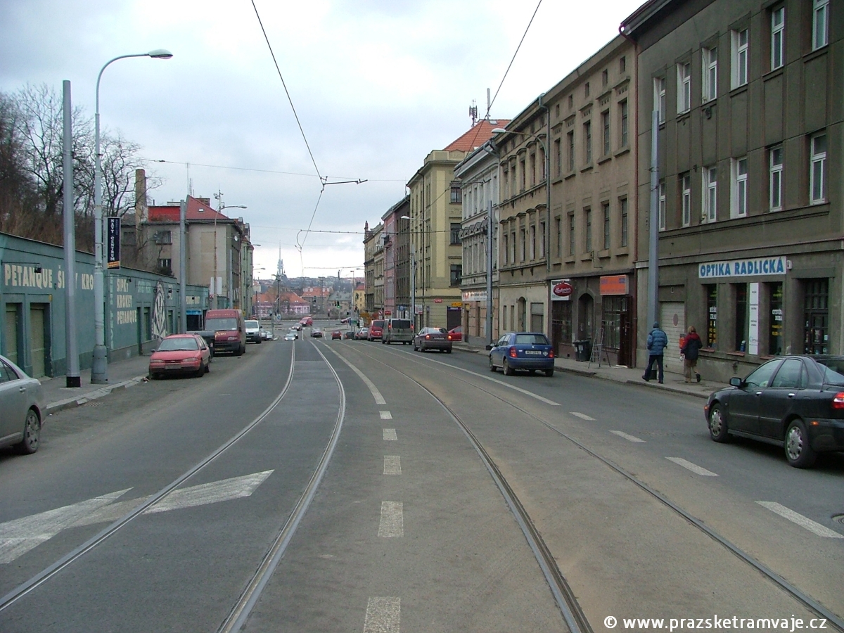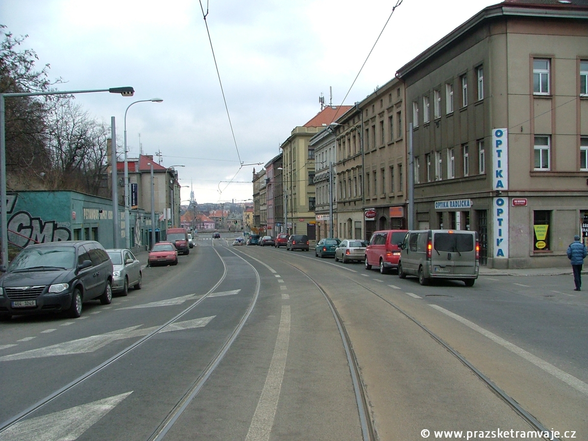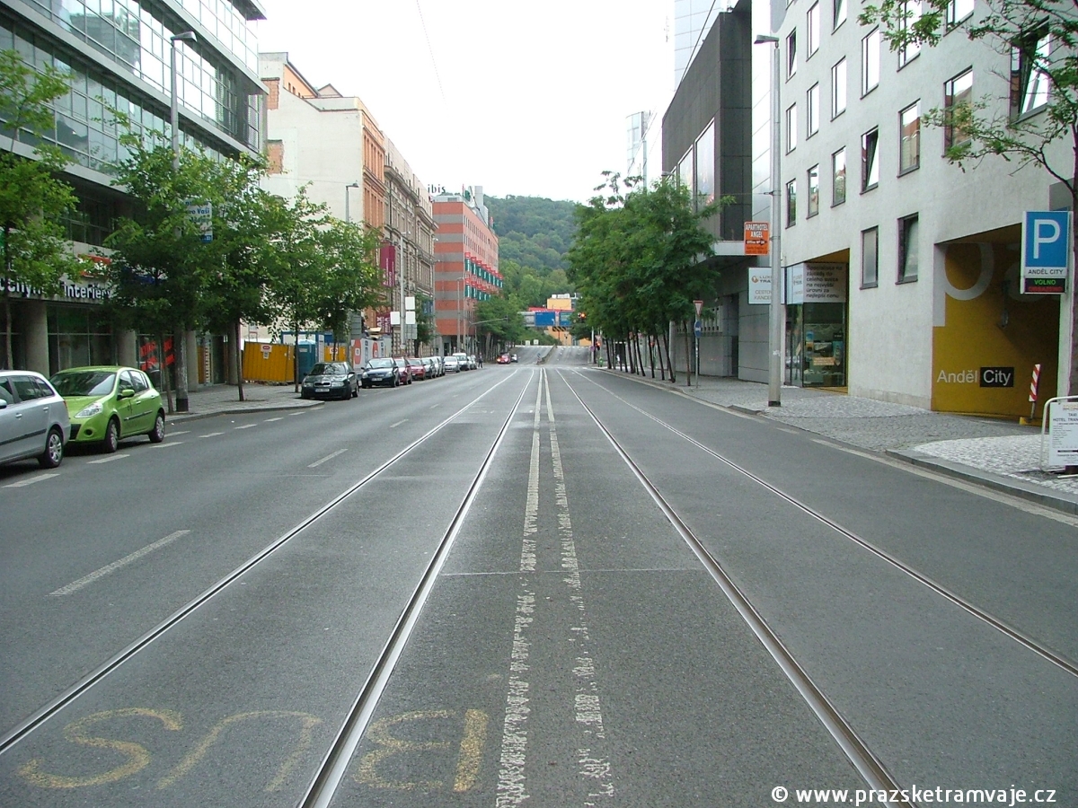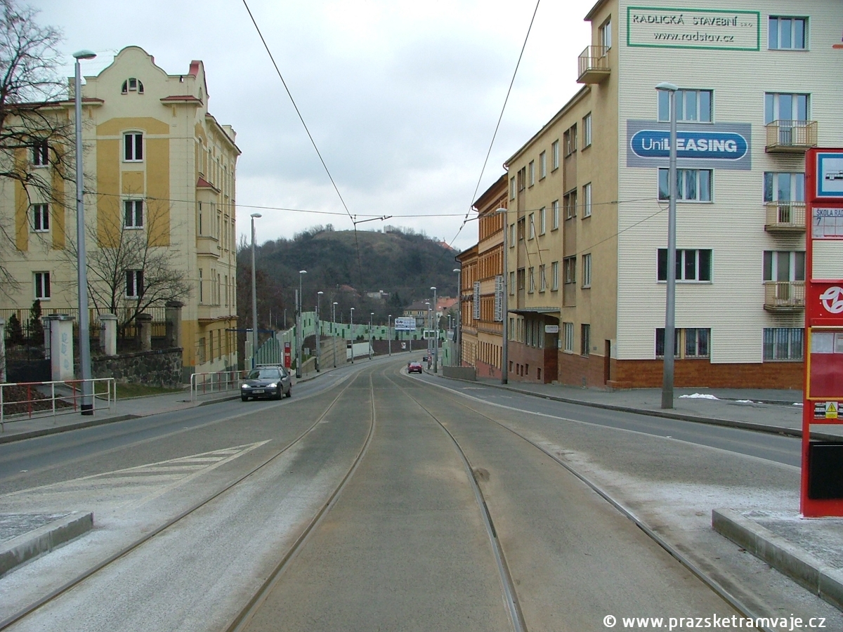 Naši cestu po tramvajové trati začneme v prostoru tramvajové smyčky Radlická, která je umístěna na náměstíčku u stejnojmenné stanice metra linky B. Tramvajová trať v prostoru křižovatky s bývalou ulicí U kostela a Radlické zamíří do středu Radlické ulice, kde je až k zastávce Laurová vedena na zvýšeném tělese ve středu Radlické ulice. Obrubníky tělesa jsou zešikmené, aby umožnily nouzový bezproblémový nájezd automobilů na koleje. Po cca 150 metrech přímého úseku se tramvajová trať začne před prostorem světelně řízené křižovatky s Pechlátovou ulicí stáčet levým obloukem do prostoru zastávek Škola Radlice před nimiž se napřimuje. Po pravé straně v našem směru popisu byla umístěna původní smyčka Radlice. Tramvajová trať za zastávkou pokračuje v klesání, zhruba v místě, kde po pravé straně končí zástavba vysokými činžovními domy začínala ikonická jednokolejná trať. Za táhlým pravotočivým obloukem se koleje opět napřimují a následují zastávky Laurová. Za křižovatkou s ulicemi K Vodojemu a Na Laurové se, s ohledem na šířkové poměry tramvajová trať stává součástí vozovky Radlické ulice. Po pravé straně bylo letité sídlo nejen redakce časopisu ABC, ale všech dětských a mládežnických časopisů vydávaných nakladatelstvím Mladá Fronta. Do bezejmenné komunikace po pravé straně byl umístěn druhý šturc vratného trojúhelníku Laurová, jehož výstavba zachránila existenci celé trati od Anděla. Na chodnících stále zůstávají označníky tehdejší výstupní a nástupní zastávky Laurová, které v současnosti slouží již jen pro noční autobusovou linku. Tramvajová trať pokračuje ve středu Radlické ulice až ke křižovatce s Braunovou ulicí, za níž následuje ostrůvek zastávky Braunova z centra. Ostrůvek zastávky Braunova do centra je umístěn až před křižovatkou s ulicí Pod Brentovou. Mezi protisměrnými ostrůvky zastávek je patrné značné vyosení tratě, aby bylo možné zřídit nástupní ostrůvek zastávky Braunova z centra. Za zastávkami Braunova se trať stáčí táhlým levým obloukem přes křižovatku s ulicí Ke Koulce až ke světelně řízené křižovatce s ulicí Křížovou. Zatímco tramvajová trať odbočí ostrým levotočivým obloukem na samostatné těleso do prostoru zastávek Křížová, které jsou umístěny v místě původní polohy Radlické ulice, automobily na této křižovatce pokračují o cca dalších 50 metrů dále, do prostoru přeložené křižovatky Radlické a Dobříšské ulice. Za zastávkami Křížová se tramvajová trať přes světelně řízenou křižovatku dostává protioblouky v kombinaci pravý a levý oblouk do středu Radlické ulice na zvýšené těleso a šikmo míří ke křižovatce s výjezdem z tunelu Mrázovka. V prostoru této světelně řízené křižovatky se stočí pravým obloukem a v úrovni vozovky Radlické ulice, ale oddělená tzv. bumlíky pokračuje až ke křižovatce s Bieblovou ulicí nalevo a vznikající ulicí Mládkové napravo. V těchto místech končí rozšířený profil Radlické ulice a tramvajová trať se protioblouky v kombinaci levý a pravý dostává do středu užší Radlické ulice. Zároveň přechází do konstrukce velkoplošných panelů BKV a není oddělena od vozovek. Následujících cca 200 metrů pokračuje v přímém úseku ke světelně řízené křižovatce Ženské domovy. Tento plnohodnotný kolejový trojúhelník, poslední v celé kolejové síti vybavený pouze čepovými výhybkami, přišel v roce 2021 z důvodu havarijního stavu o obě výhybky od / ke smyčce Radlická a v ulici Za Ženskými domovy. Křižovatka se tedy dá využívat pouze v přímém směru po Radlické ulici a v obloucích Radlická – Za Ženskými domovy ve směru od a k Plzeňské ulici. Po překonání této křižovatky následuje cca 70 metrů dlouhý úsek k další světelně řízené křižovatce s ulicí Ostrovského. V tomto prostoru byly až do roku 2000 umístěny ostrůvky zastávek Ženské domovy. Díky jejich snesení je mezi zastávkami Křížová a Anděl vzdálenost překračující 1 kilometr. V křižovatce s ulicí Ostrovského se koleje stočí v pravém oblouku, napřímí a v prostoru křižovatky s Klicperovou ulicí se opět protioblouky v kombinaci levý a pravý dostanou více do levé části Radlické ulice. V tomto prostoru býval areál legendární firmy ČKD Tatra Smíchov a je osudovou chybou, že po její likvidaci se nepodařilo plnohodnotně rozšířit profil Radlické ulice tak, aby se vedle tramvajových kolejí ve směru k Plzeňské ulici vešel jízdní pruh pro automobily. Tramvaje se tak až k Plzeňské ulici přetahují s automobily o svůj díl prostoru. Ve vyústění ulice Karla Engliše je umístěn světelně řízený přechod pro chodce přes Radlickou ulici a tramvajová trať pokračuje ve středu Radlické ulice přímým úsekem až ke křižovatce Křižík v prostoru Radlické a Plzeňské ulice, kde naše cesta končí.
