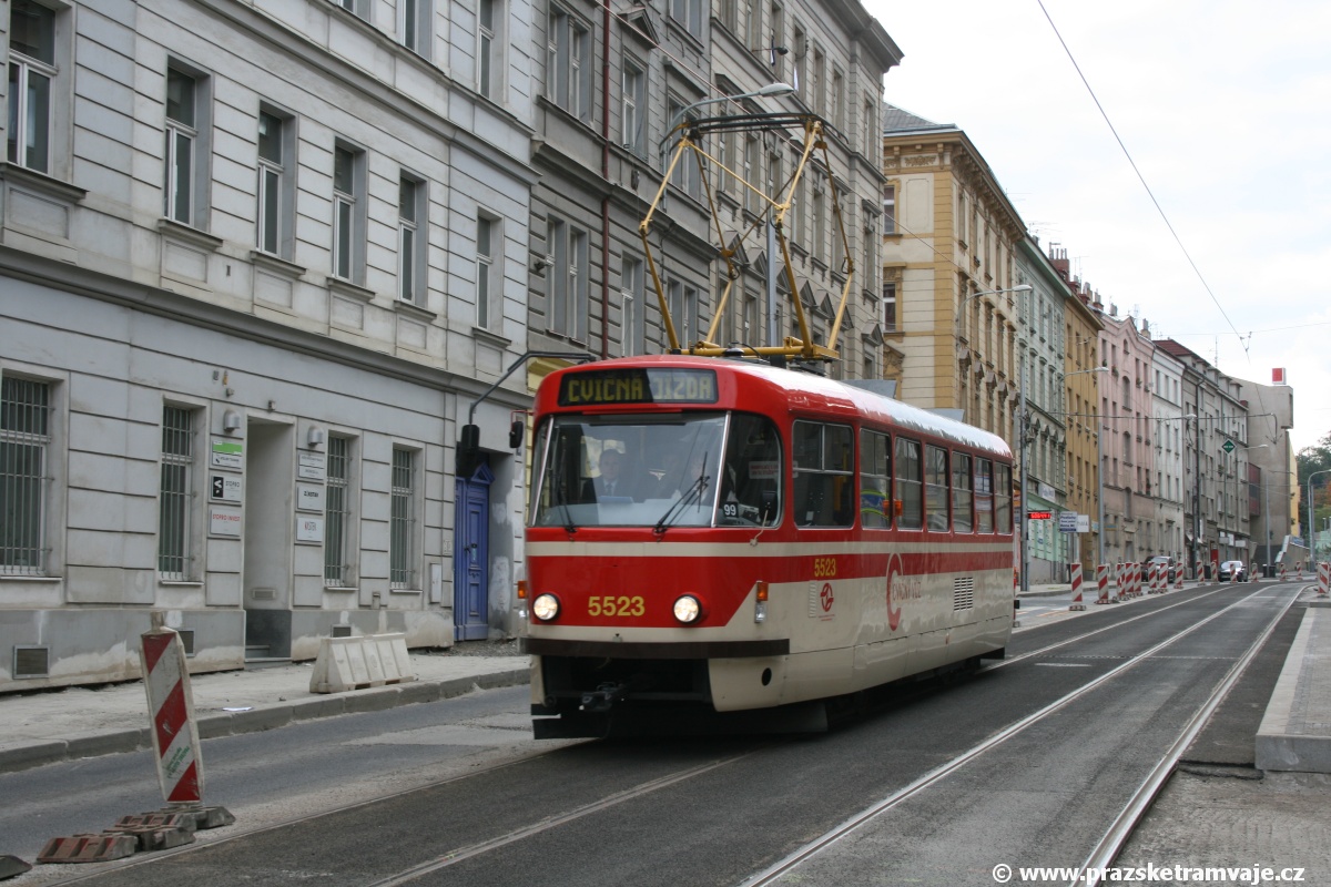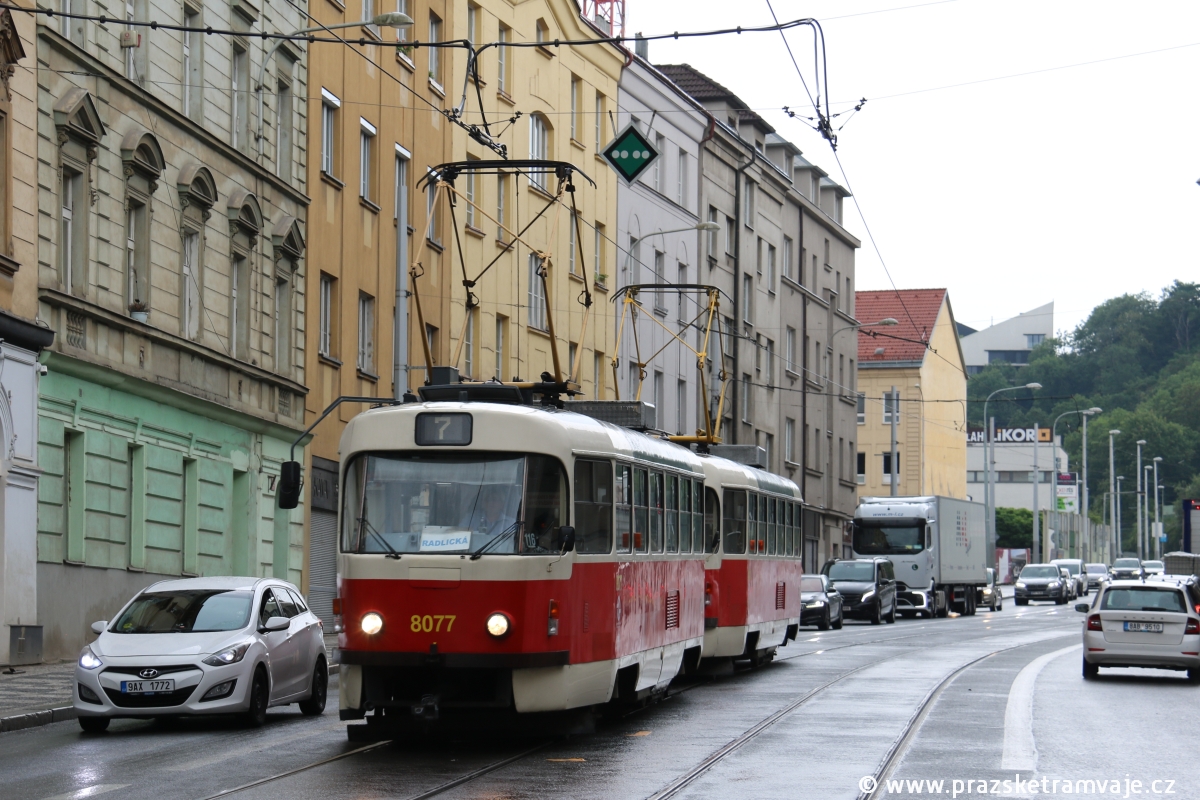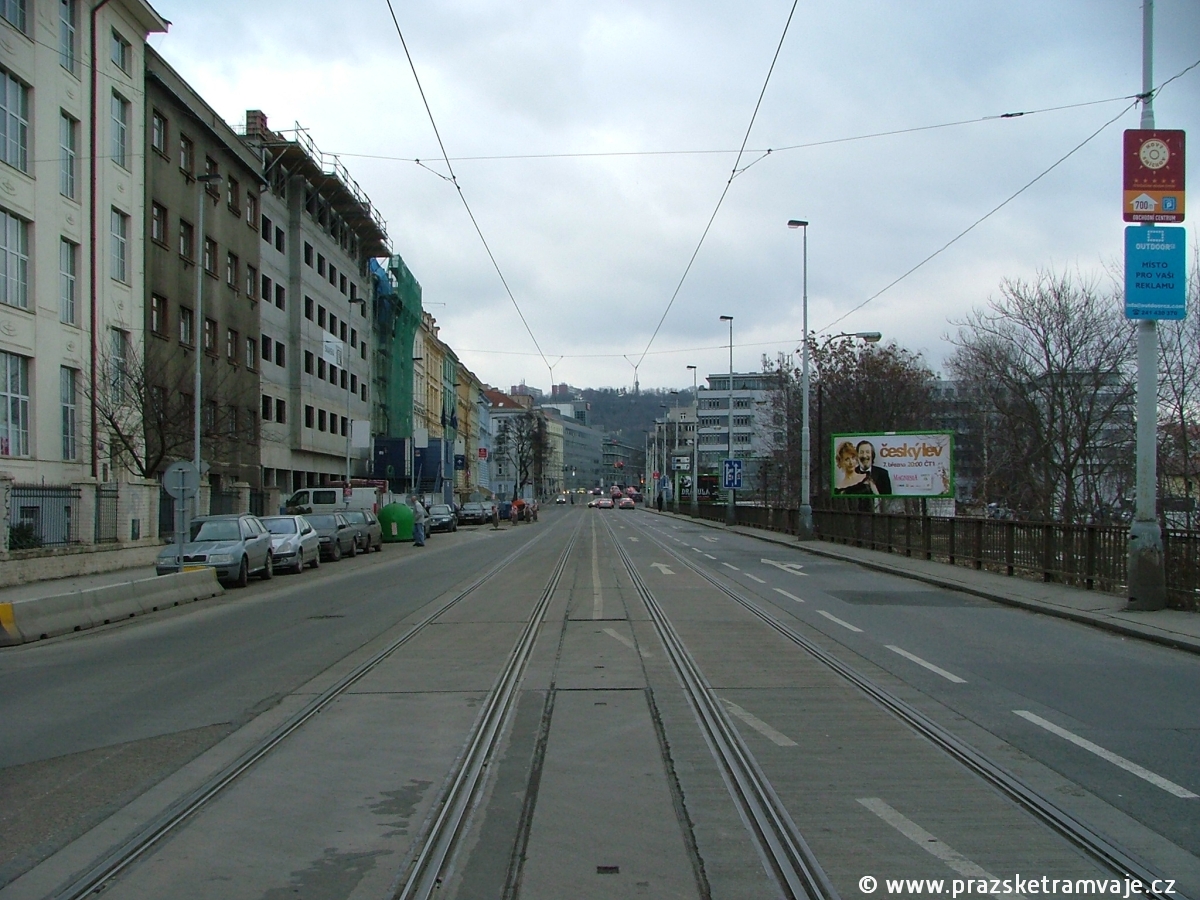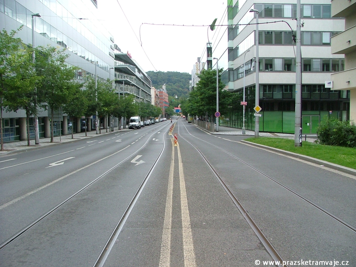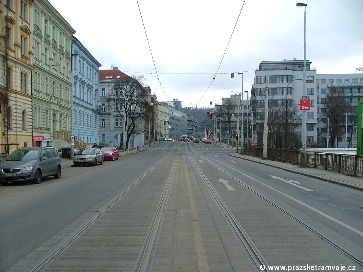 Naši cestu po tramvajové trati začneme v prostoru tramvajové smyčky Radlická, která je umístěna na náměstíčku u stejnojmenné stanice metra linky B. Tramvajová trať v prostoru křižovatky s bývalou ulicí U kostela a Radlické zamíří do středu Radlické ulice, kde je až k zastávce Laurová vedena na zvýšeném tělese ve středu Radlické ulice. Obrubníky tělesa jsou zešikmené, aby umožnily nouzový bezproblémový nájezd automobilů na koleje. Po cca 150 metrech přímého úseku se tramvajová trať začne před prostorem světelně řízené křižovatky s Pechlátovou ulicí stáčet levým obloukem do prostoru zastávek Škola Radlice před nimiž se napřimuje. Po pravé straně v našem směru popisu byla umístěna původní smyčka Radlice. Tramvajová trať za zastávkou pokračuje v klesání, zhruba v místě, kde po pravé straně končí zástavba vysokými činžovními domy začínala ikonická jednokolejná trať. Za táhlým pravotočivým obloukem se koleje opět napřimují a následují zastávky Laurová. Za křižovatkou s ulicemi K Vodojemu a Na Laurové se, s ohledem na šířkové poměry tramvajová trať stává součástí vozovky Radlické ulice. Po pravé straně bylo letité sídlo nejen redakce časopisu ABC, ale všech dětských a mládežnických časopisů vydávaných nakladatelstvím Mladá Fronta. Do bezejmenné komunikace po pravé straně byl umístěn druhý šturc vratného trojúhelníku Laurová, jehož výstavba zachránila existenci celé trati od Anděla. Na chodnících stále zůstávají označníky tehdejší výstupní a nástupní zastávky Laurová, které v současnosti slouží již jen pro noční autobusovou linku. Tramvajová trať pokračuje ve středu Radlické ulice až ke křižovatce s Braunovou ulicí, za níž následuje ostrůvek zastávky Braunova z centra. Ostrůvek zastávky Braunova do centra je umístěn až před křižovatkou s ulicí Pod Brentovou. Mezi protisměrnými ostrůvky zastávek je patrné značné vyosení tratě, aby bylo možné zřídit nástupní ostrůvek zastávky Braunova z centra. Za zastávkami Braunova se trať stáčí táhlým levým obloukem přes křižovatku s ulicí Ke Koulce až ke světelně řízené křižovatce s ulicí Křížovou. Zatímco tramvajová trať odbočí ostrým levotočivým obloukem na samostatné těleso do prostoru zastávek Křížová, které jsou umístěny v místě původní polohy Radlické ulice, automobily na této křižovatce pokračují o cca dalších 50 metrů dále, do prostoru přeložené křižovatky Radlické a Dobříšské ulice. Za zastávkami Křížová se tramvajová trať přes světelně řízenou křižovatku dostává protioblouky v kombinaci pravý a levý oblouk do středu Radlické ulice na zvýšené těleso a šikmo míří ke křižovatce s výjezdem z tunelu Mrázovka. V prostoru této světelně řízené křižovatky se stočí pravým obloukem a v úrovni vozovky Radlické ulice, ale oddělená tzv. bumlíky pokračuje až ke křižovatce s Bieblovou ulicí nalevo a vznikající ulicí Mládkové napravo. V těchto místech končí rozšířený profil Radlické ulice a tramvajová trať se protioblouky v kombinaci levý a pravý dostává do středu užší Radlické ulice. Zároveň přechází do konstrukce velkoplošných panelů BKV a není oddělena od vozovek. Následujících cca 200 metrů pokračuje v přímém úseku ke světelně řízené křižovatce Ženské domovy. Tento plnohodnotný kolejový trojúhelník, poslední v celé kolejové síti vybavený pouze čepovými výhybkami, přišel v roce 2021 z důvodu havarijního stavu o obě výhybky od / ke smyčce Radlická a v ulici Za Ženskými domovy. Křižovatka se tedy dá využívat pouze v přímém směru po Radlické ulici a v obloucích Radlická – Za Ženskými domovy ve směru od a k Plzeňské ulici. Po překonání této křižovatky následuje cca 70 metrů dlouhý úsek k další světelně řízené křižovatce s ulicí Ostrovského. V tomto prostoru byly až do roku 2000 umístěny ostrůvky zastávek Ženské domovy. Díky jejich snesení je mezi zastávkami Křížová a Anděl vzdálenost překračující 1 kilometr. V křižovatce s ulicí Ostrovského se koleje stočí v pravém oblouku, napřímí a v prostoru křižovatky s Klicperovou ulicí se opět protioblouky v kombinaci levý a pravý dostanou více do levé části Radlické ulice. V tomto prostoru býval areál legendární firmy ČKD Tatra Smíchov a je osudovou chybou, že po její likvidaci se nepodařilo plnohodnotně rozšířit profil Radlické ulice tak, aby se vedle tramvajových kolejí ve směru k Plzeňské ulici vešel jízdní pruh pro automobily. Tramvaje se tak až k Plzeňské ulici přetahují s automobily o svůj díl prostoru. Ve vyústění ulice Karla Engliše je umístěn světelně řízený přechod pro chodce přes Radlickou ulici a tramvajová trať pokračuje ve středu Radlické ulice přímým úsekem až ke křižovatce Křižík v prostoru Radlické a Plzeňské ulice, kde naše cesta končí.
