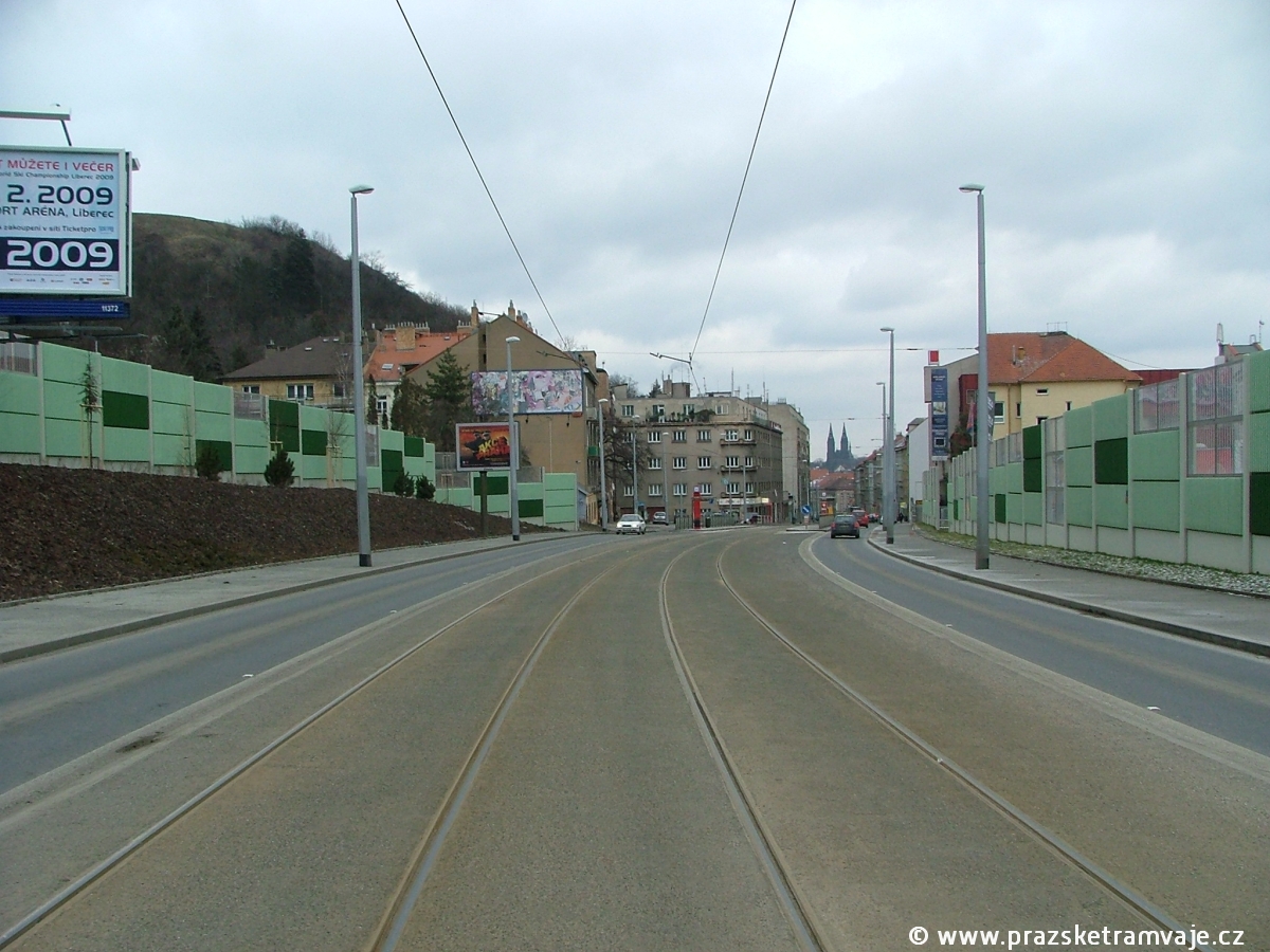 Tramvajová trať netvoří konstrukčně kompaktní celek. Od smyčky Radlická po křižovatku s ulicí Na Laurové, u zastávek Laurová, je tramvajová trať vybudována standardní metodou kolejnic na příčných pražcích a asfaltovým zákrytem. Od zmíněného místa po oblouk před zastávkami Křížová využívají koleje původní betonovou desku, na níž jsou kolejnice upevněny vzor Metro. Od oblouku před zastávkami Křížová až k protiobloukům u vyústění tunelu Mrázovka je opět trať vybudována formou kolejnic na příčných pražcích, opět s asfaltovým zákrytem. Následující přímý úsek až ke křižovatce Ženské domovy je zřízen metodou velkoplošných panelů BKV. Zbývající část od křižovatky Ženské domovy po křižovatku Křižík je vybudován opět z kolejnic na příčných pražcích a s asfaltovým zákrytem.