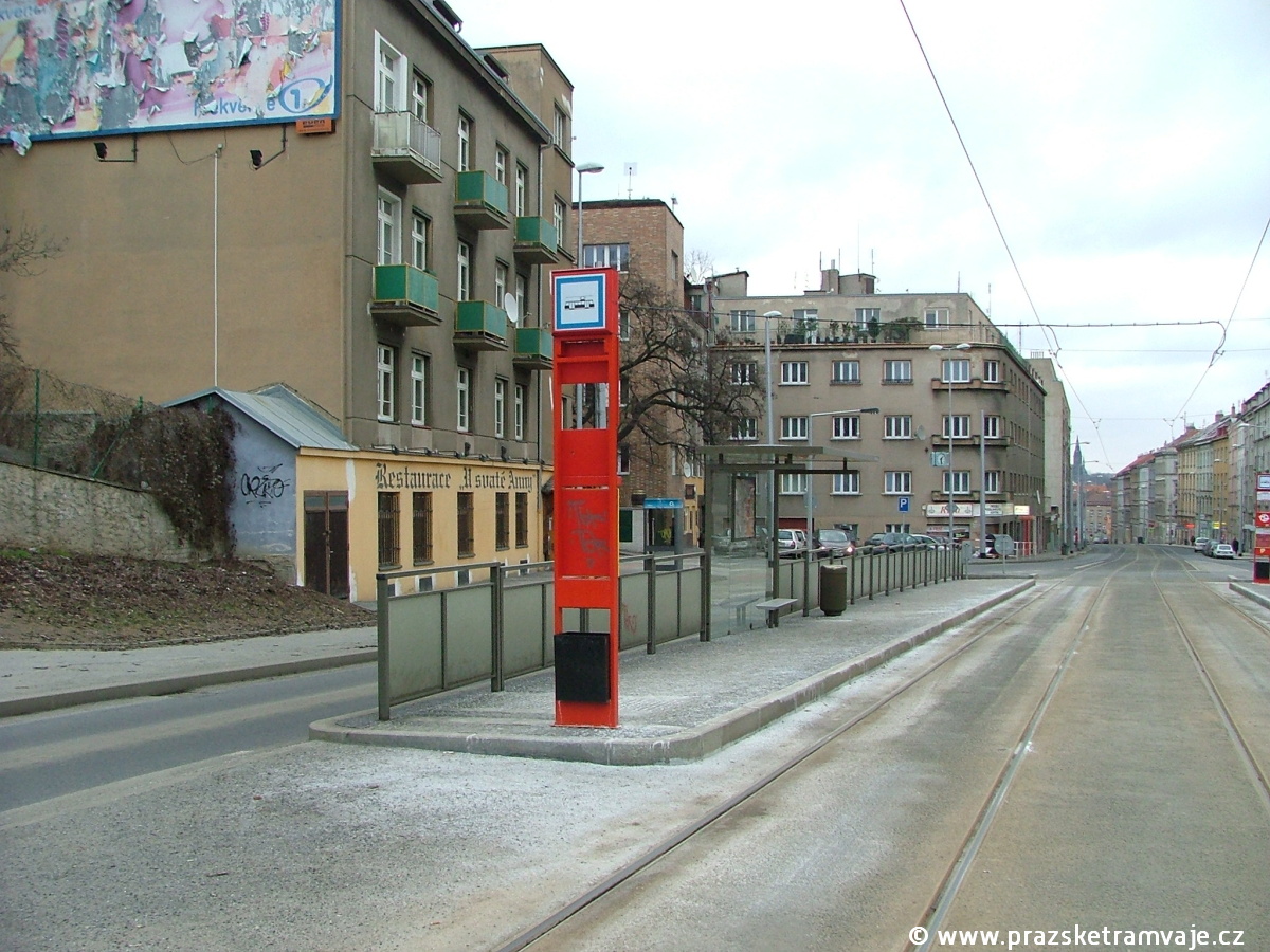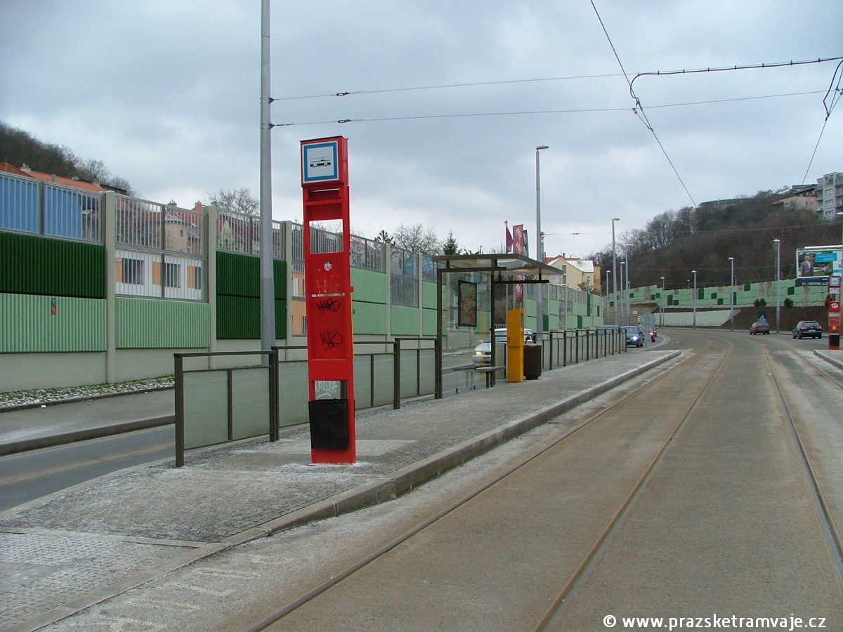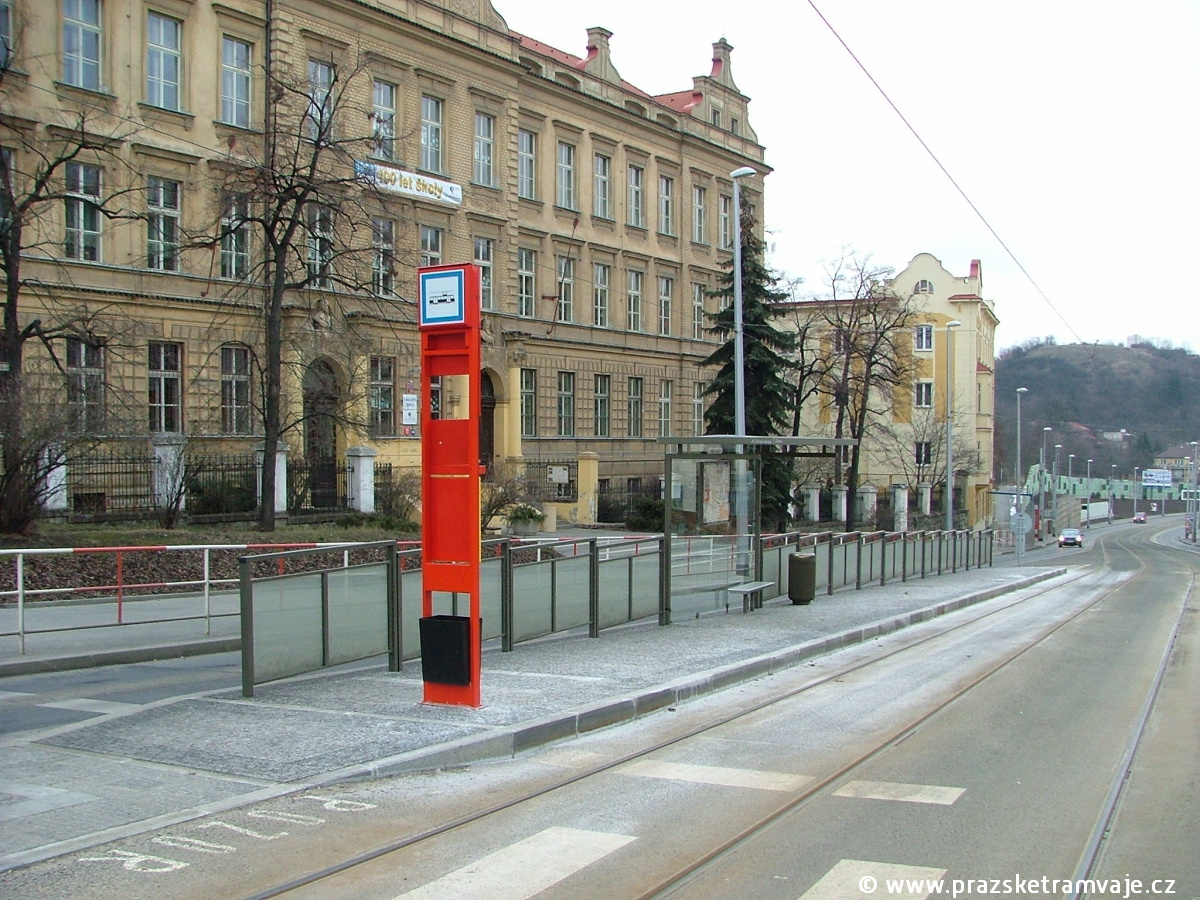 - nácestná zastávka ve směru k zastávce Laurová ve středu Radlické ulice, 40 metrů za křižovatkou s ulicí Pechlátova, nástupiště pro jeden vlak 2xT - nácestná zastávka ve směru k zastávce Radlická ve středu Radlické ulice, 7 metrů před křižovatkou s protilehlou ulicí Pechlátova, nástupiště pro jeden vlak 2xT - nácestná zastávka ve směru k zastávce Braunova ve středu Radlické ulice, 10 metrů před křižovatkou s ulicí Na Laurové, nástupiště pro jeden vlak 2xT - nácestná zastávka ve směru k zastávce Škola Radlice ve středu Radlické ulice, 43 metrů za křižovatkou s ulicí K Vodojemu, nástupiště pro jeden vlak 2xT - nácestná zastávka ve směru k zastávce Křížová ve středu Radlické ulice, 33 metrů před křižovatkou s ulicí Pod Brentovou, nástupní ostrůvek pro jeden vlak 2xT - nácestná zastávka ve směru k zastávce Laurová ve středu Radlické ulice, 13 metrů před křižovatkou s ulicí Braunova, nástupní ostrůvek pro jeden vlak 2xT - nácestná zastávka ve směru k zastávkám Bertramka, respektive Anděl na vlastním tělese na západní straně Radlické ulice, u křižovatky ulic Radlická a Křížová, 53 metrů za odbočením na vlastní těleso z Radlické ulice, nástupiště pro jeden vlak 2xT - nácestná zastávka ve směru k zastávce Braunova na vlastním tělese na západní straně Radlické ulice, u křižovatky ulic Radlická a Křížová, 20 metrů před vyústěním vlastního tělesa na Radlickou ulici, nástupiště pro jeden vlak 2xT