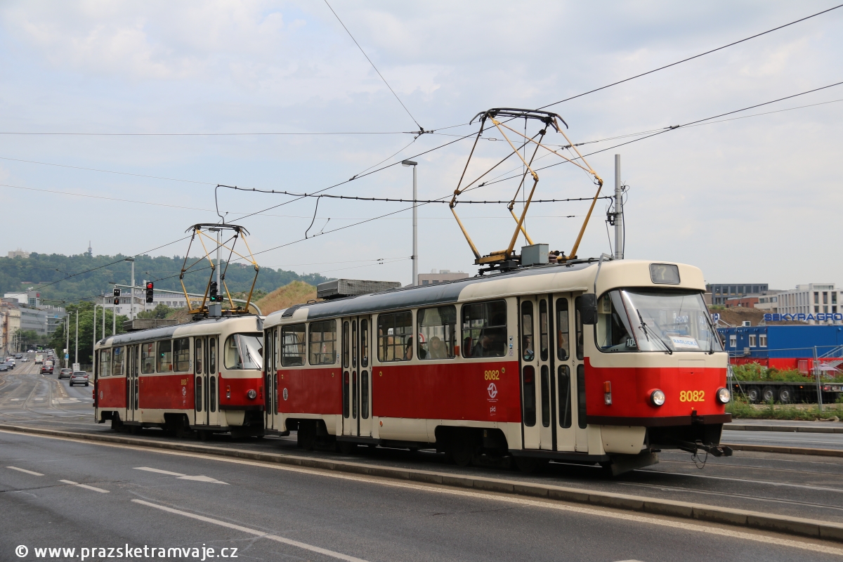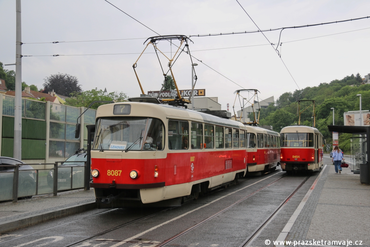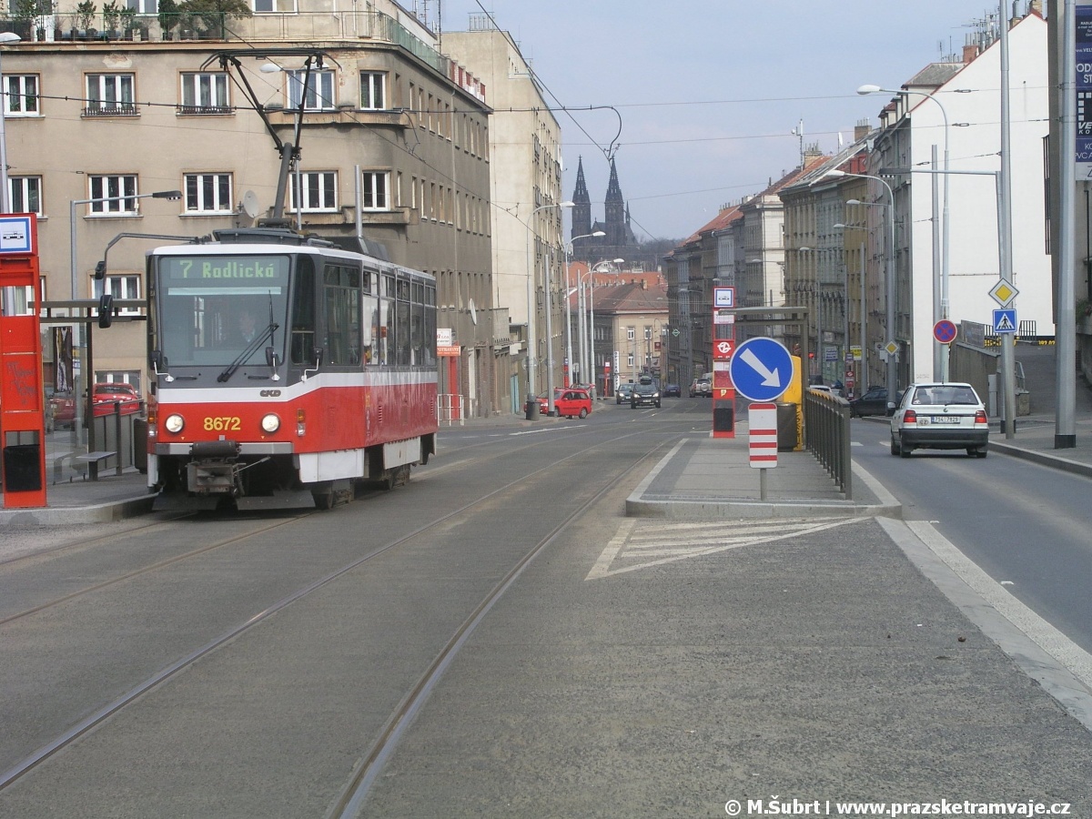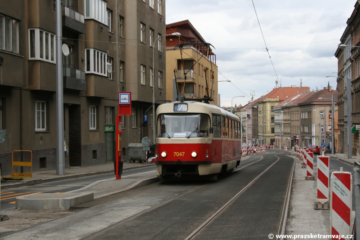 - nácestná zastávka ve směru k zastávce Laurová ve středu Radlické ulice, 40 metrů za křižovatkou s ulicí Pechlátova, nástupiště pro jeden vlak 2xT - nácestná zastávka ve směru k zastávce Radlická ve středu Radlické ulice, 7 metrů před křižovatkou s protilehlou ulicí Pechlátova, nástupiště pro jeden vlak 2xT - nácestná zastávka ve směru k zastávce Braunova ve středu Radlické ulice, 10 metrů před křižovatkou s ulicí Na Laurové, nástupiště pro jeden vlak 2xT - nácestná zastávka ve směru k zastávce Škola Radlice ve středu Radlické ulice, 43 metrů za křižovatkou s ulicí K Vodojemu, nástupiště pro jeden vlak 2xT - nácestná zastávka ve směru k zastávce Křížová ve středu Radlické ulice, 33 metrů před křižovatkou s ulicí Pod Brentovou, nástupní ostrůvek pro jeden vlak 2xT - nácestná zastávka ve směru k zastávce Laurová ve středu Radlické ulice, 13 metrů před křižovatkou s ulicí Braunova, nástupní ostrůvek pro jeden vlak 2xT - nácestná zastávka ve směru k zastávkám Bertramka, respektive Anděl na vlastním tělese na západní straně Radlické ulice, u křižovatky ulic Radlická a Křížová, 53 metrů za odbočením na vlastní těleso z Radlické ulice, nástupiště pro jeden vlak 2xT - nácestná zastávka ve směru k zastávce Braunova na vlastním tělese na západní straně Radlické ulice, u křižovatky ulic Radlická a Křížová, 20 metrů před vyústěním vlastního tělesa na Radlickou ulici, nástupiště pro jeden vlak 2xT