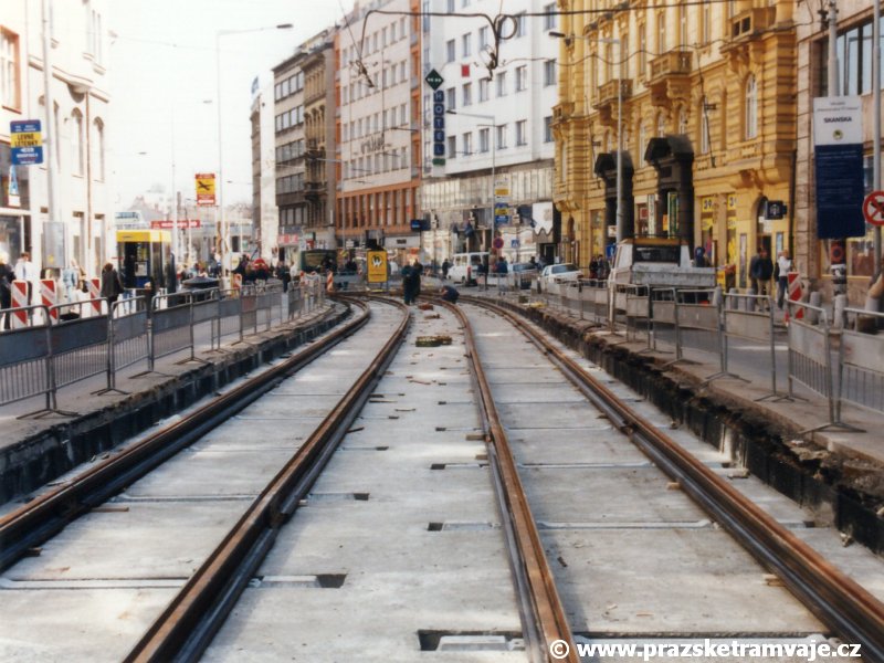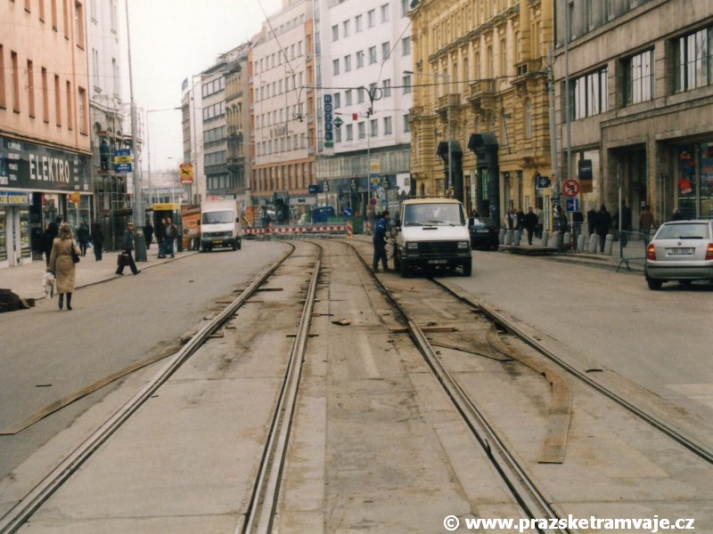 následná intenzivní náhradní tramvajová doprava za metro dokonala dílo zkázy také v přilehlé ulici Na Poříčí.