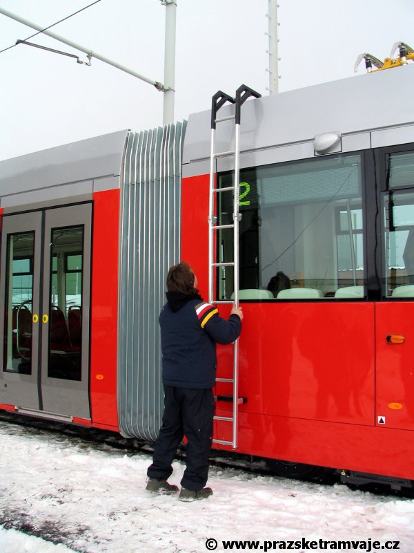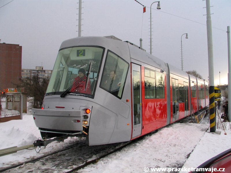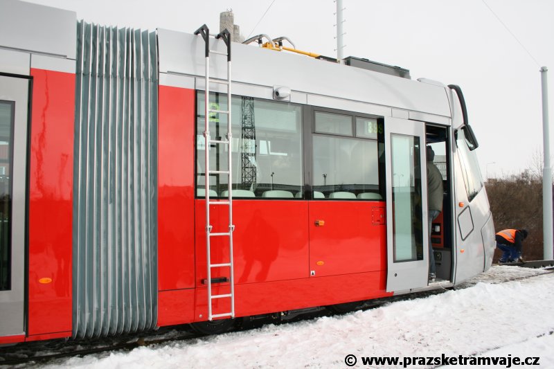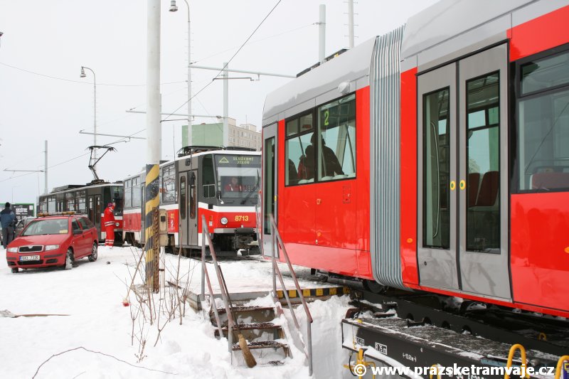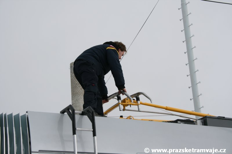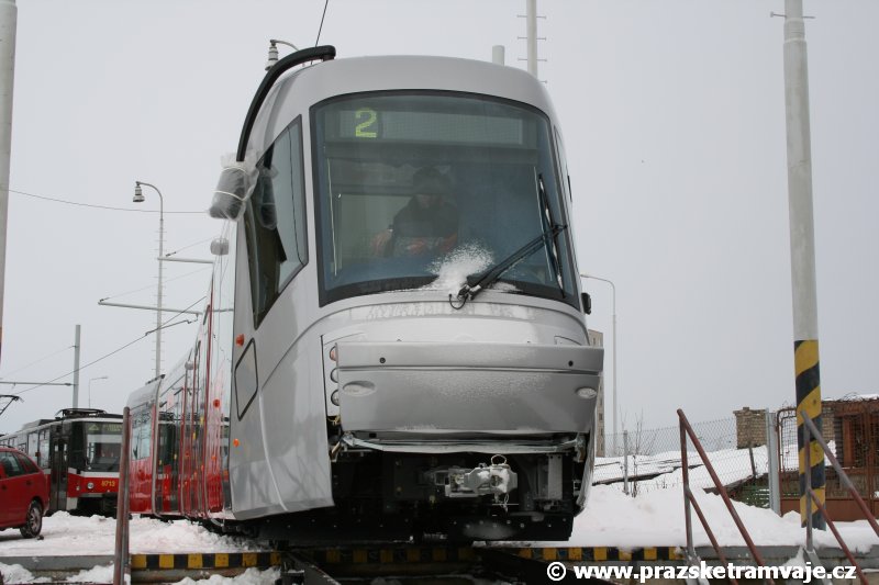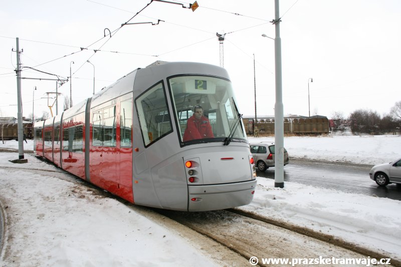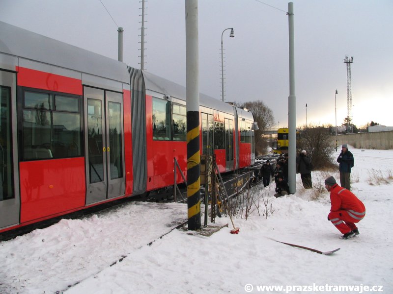 krátce po předání vozu 9116, který přijel do Prahy 23. ledna 2007. Pražské koleje