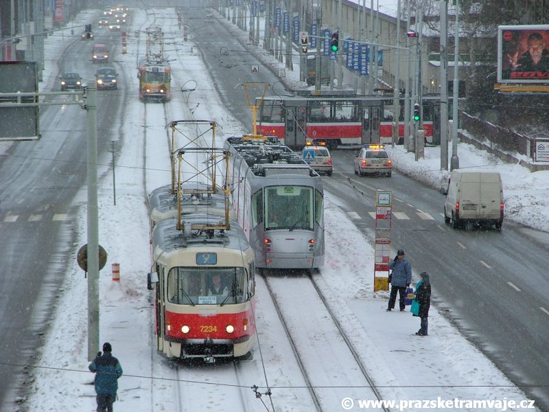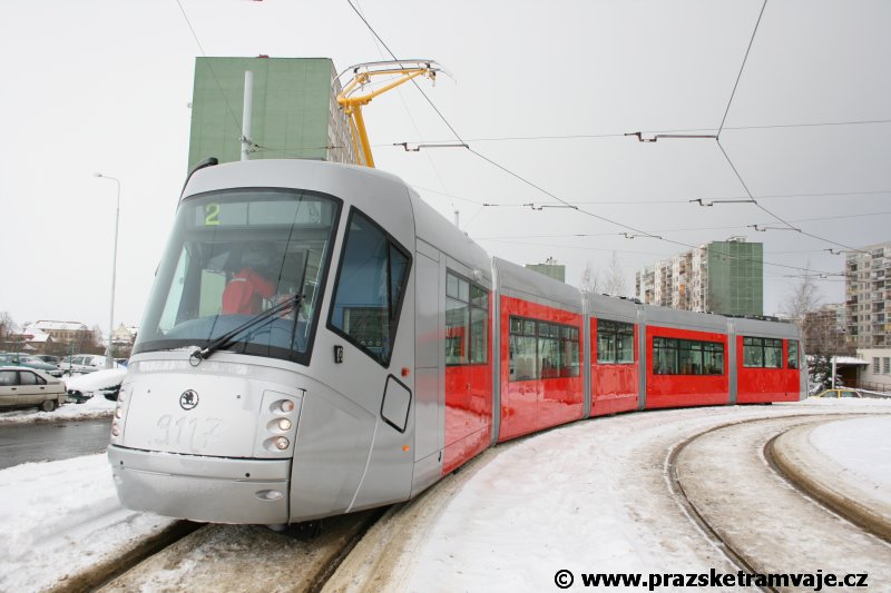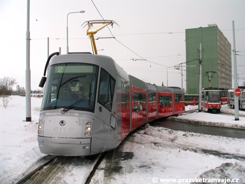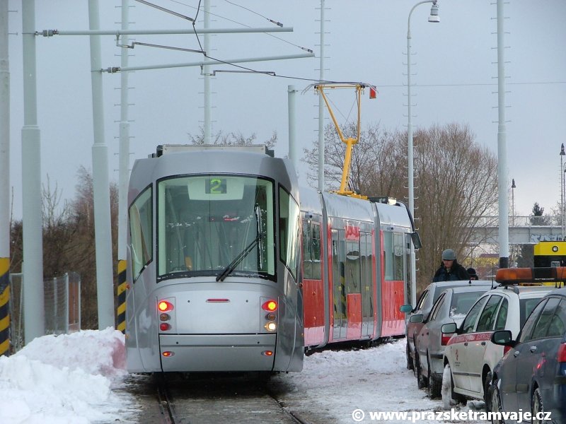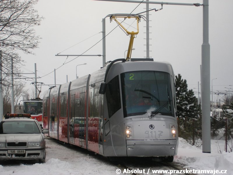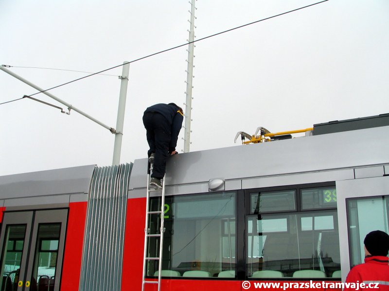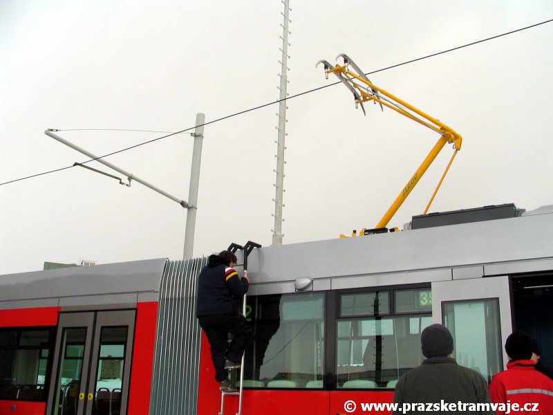 krátce po předání vozu 9116, který přijel do Prahy 23. ledna 2007. Pražské koleje