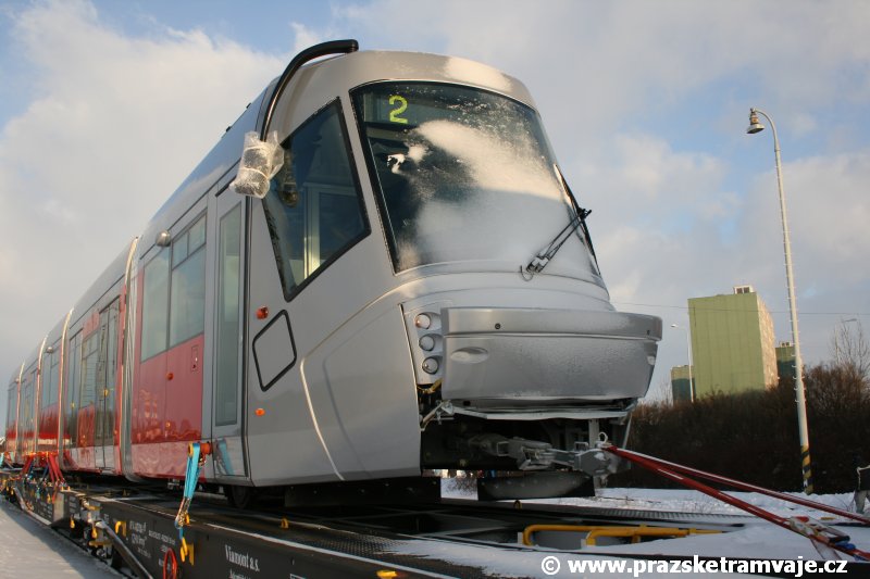 V pořadí již sedmý vůz typu Škoda 14T určený pro Prahu dorazil do Prahy velmi
