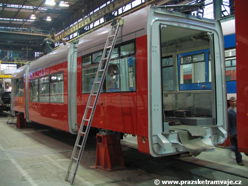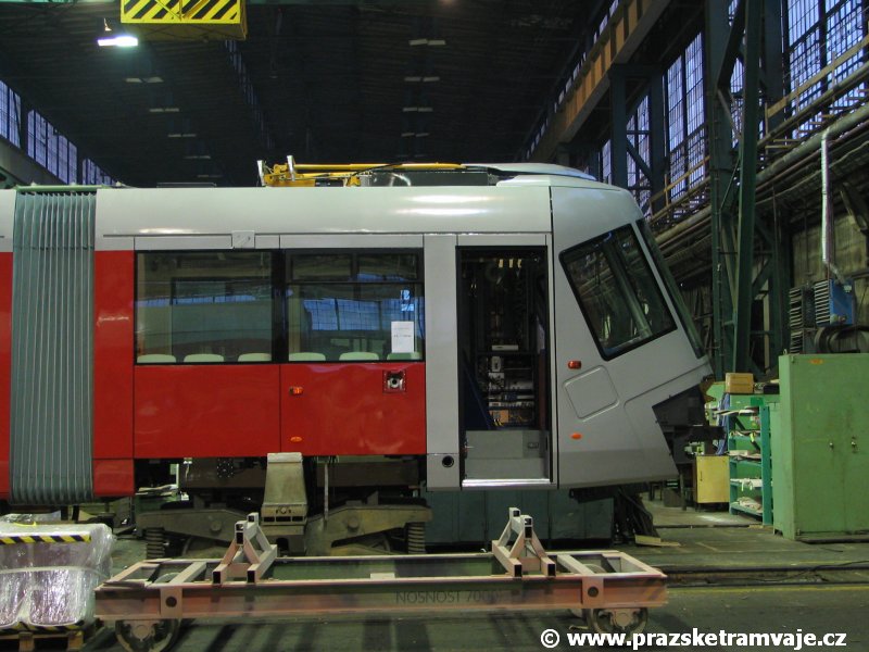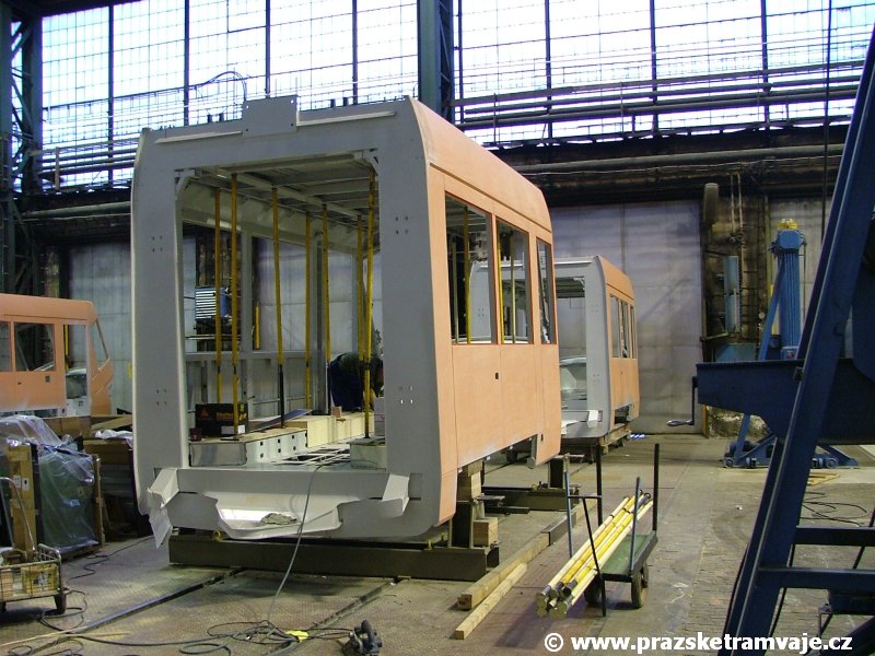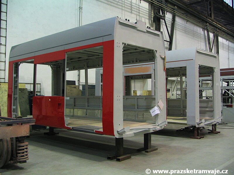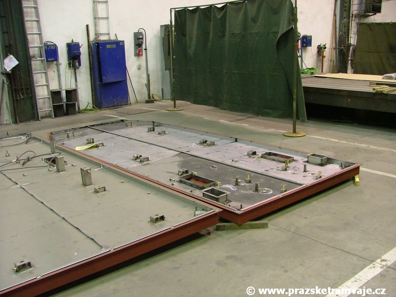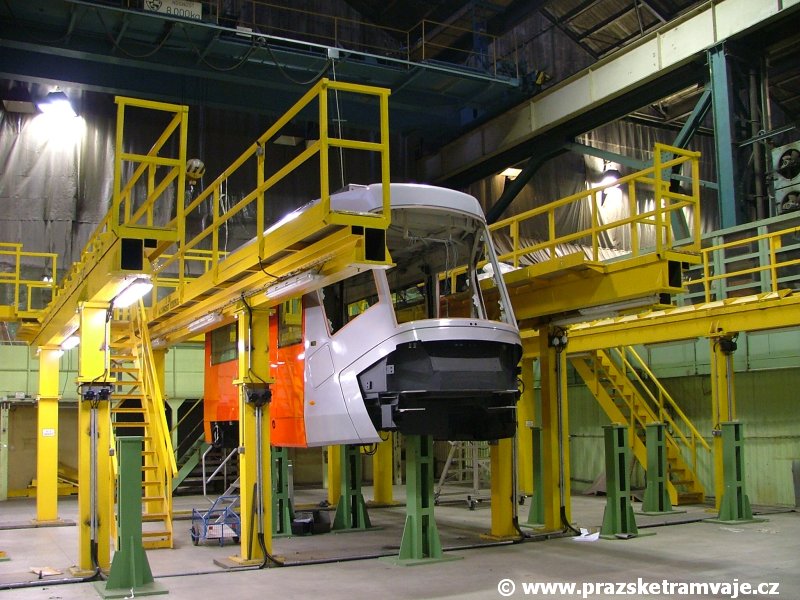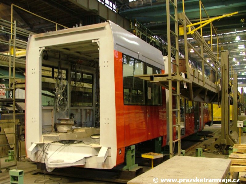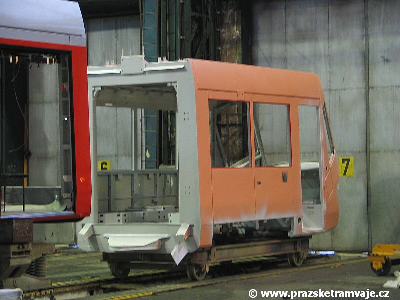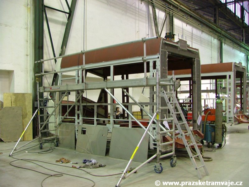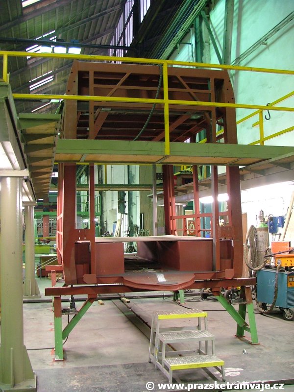 Mezi lávkami zde momentálně nacházíme zárodek vozu 14T ev.č.9117. Články nejsou ještě vzájemně propojeny, probíhá v nich zatím montáž elektrovýzbroje.