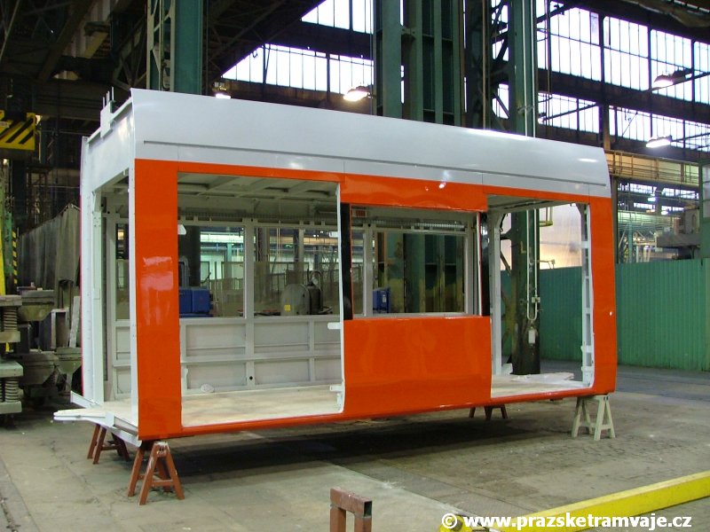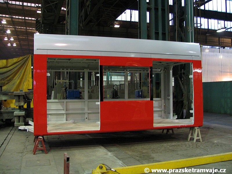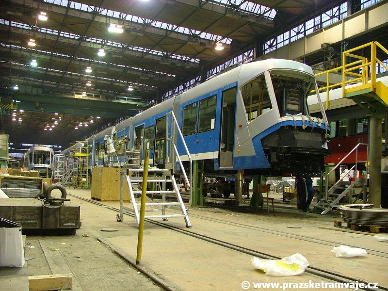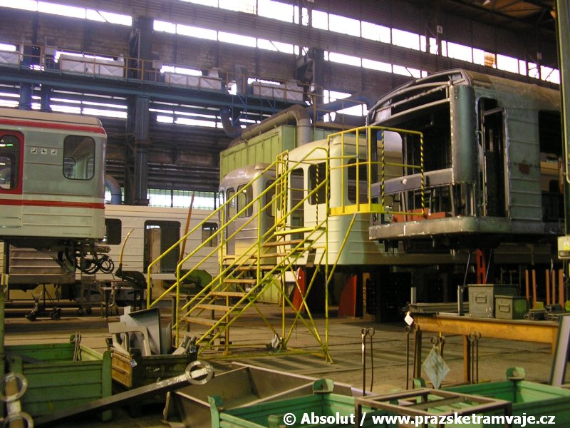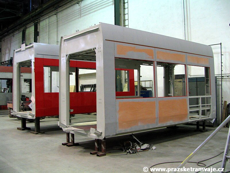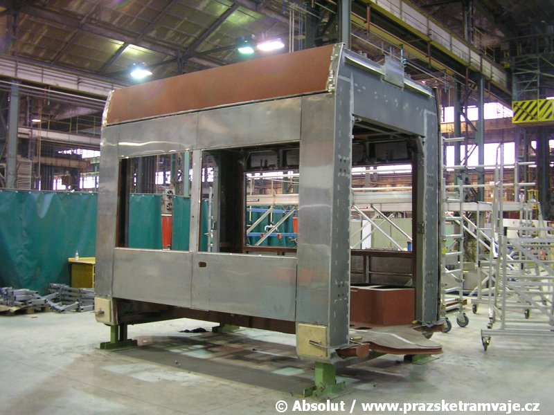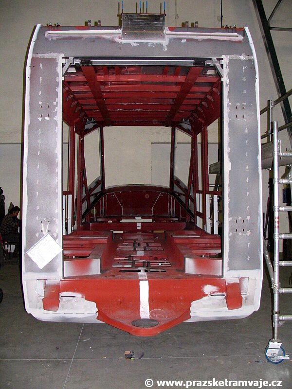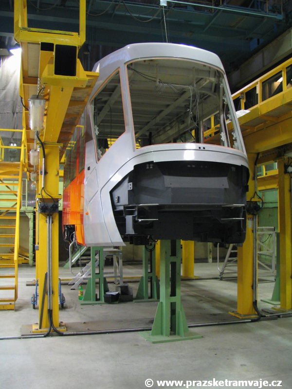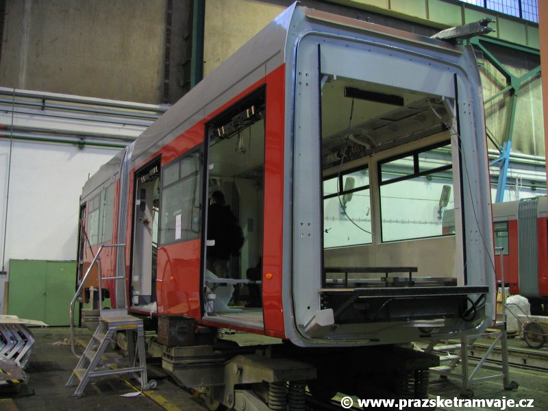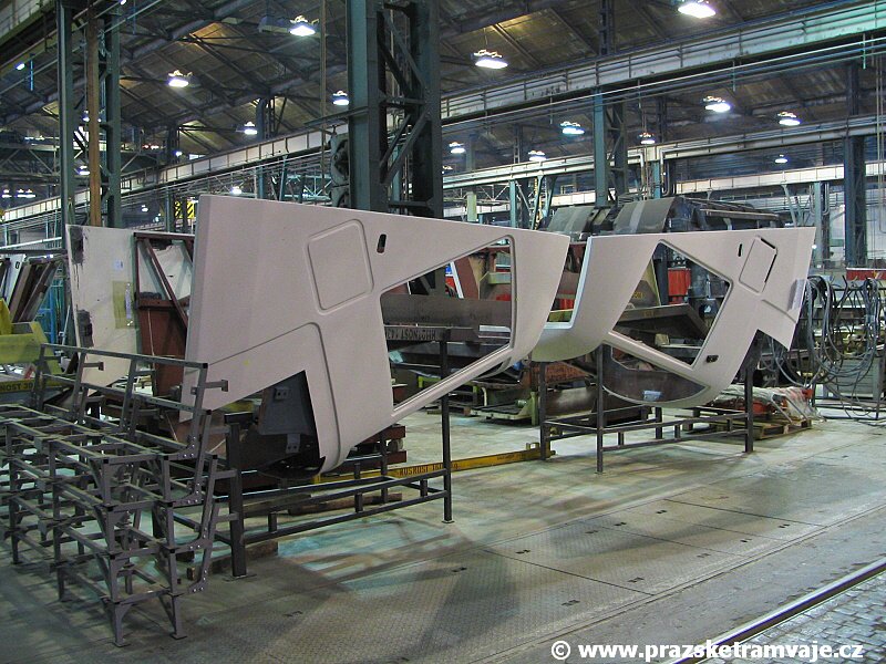 Mezi lávkami zde momentálně nacházíme zárodek vozu 14T ev.č.9117. Články nejsou ještě vzájemně propojeny, probíhá v nich zatím montáž elektrovýzbroje.