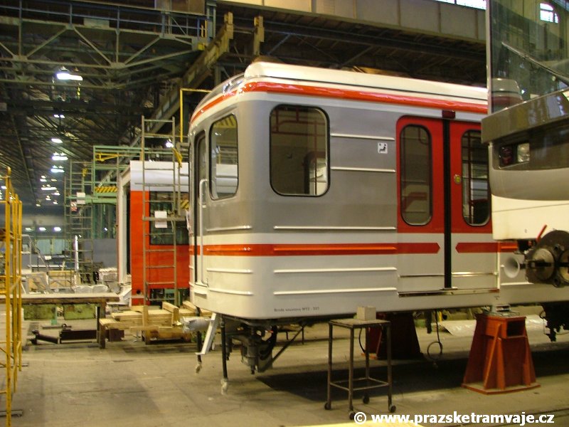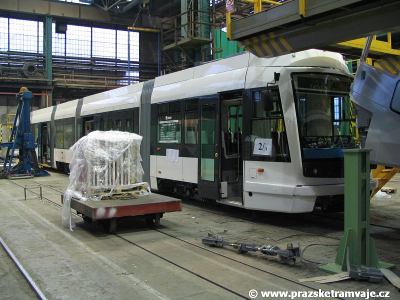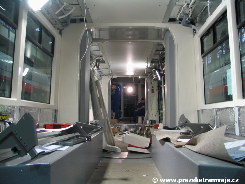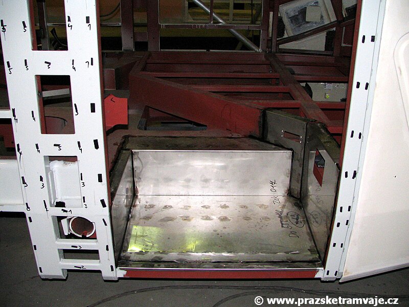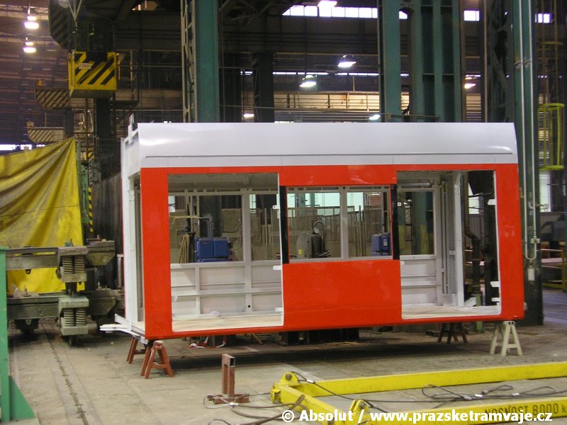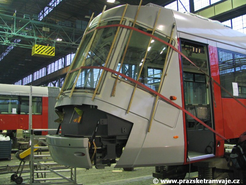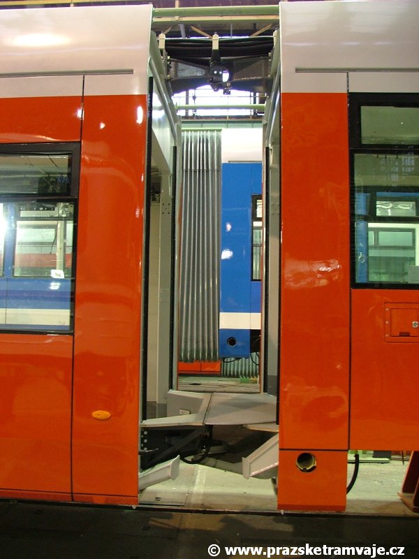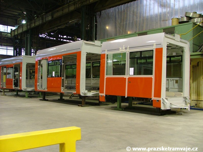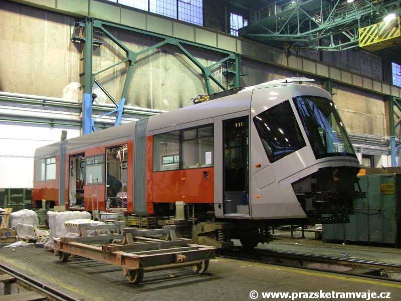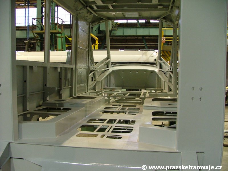 Mezi lávkami zde momentálně nacházíme zárodek vozu 14T ev.č.9117. Články nejsou ještě vzájemně propojeny, probíhá v nich zatím montáž elektrovýzbroje.