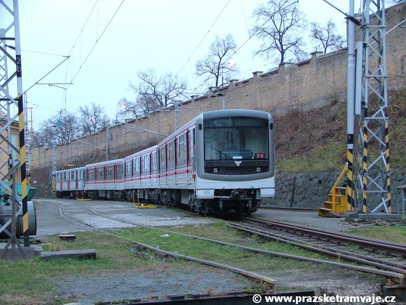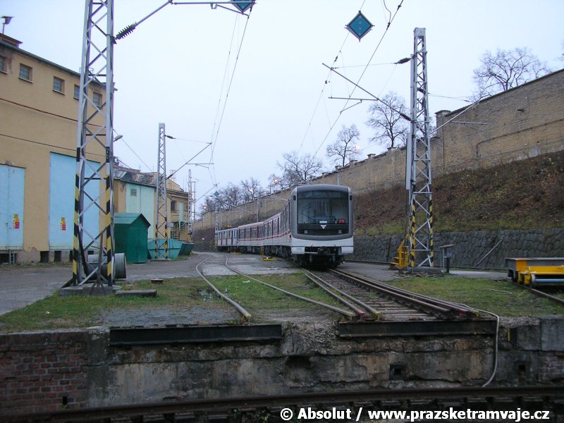 byly na konci testovací koleje připraveny k transportu modernizované vagony metra.