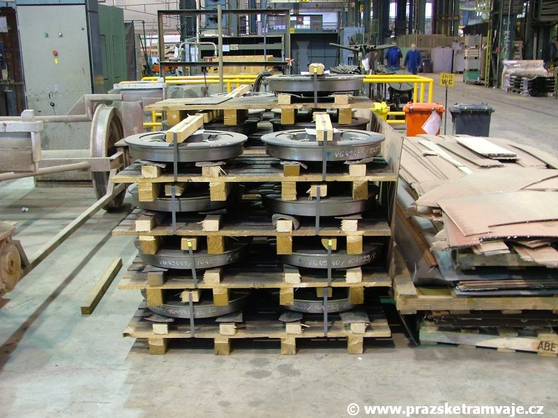 V této části haly také nalezneme sklad jednotlivých komponent, zejména složená kola, pár jalových podvozků a dále skelety a součásti potřebné k výrobě nové lokomotivy ŠKODA 109 E, řady 380