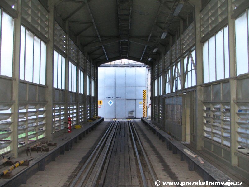prostor haly sdílejí tramvajové vozy s prostorem, kde probíhají modernizace vozů metra. V těchto místech se jednotlivé články umisťují pomocí