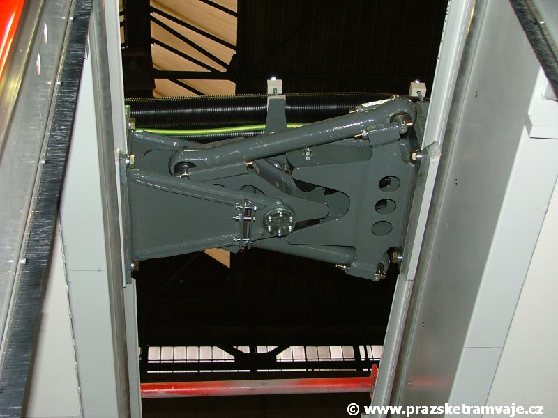 zaujme rozdílnost řešení třetího středního článku. Ten není na rozdíl od pražské verze hnaný, což umožňuje vynechání schodů uprostřed vozu. Dále vidíme již