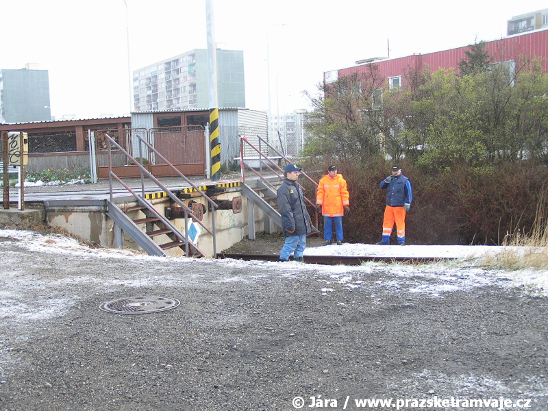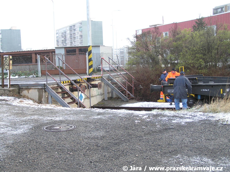 Skládání tramvaje Škoda 14T ev.č.9114 na pražské koleje 22.12.2006