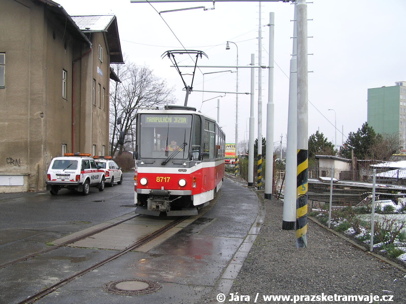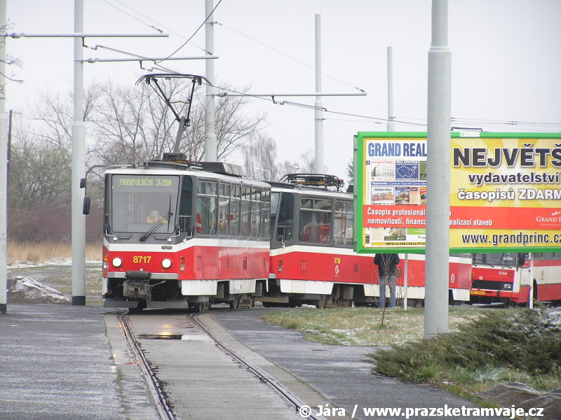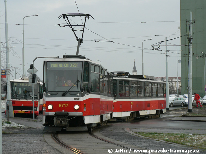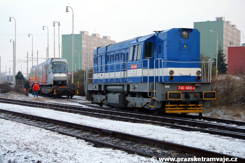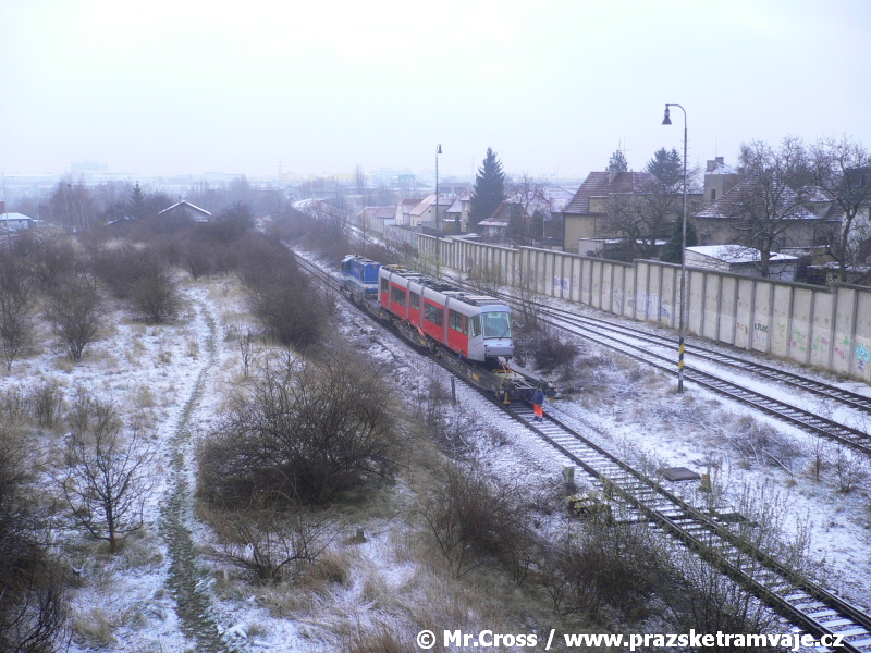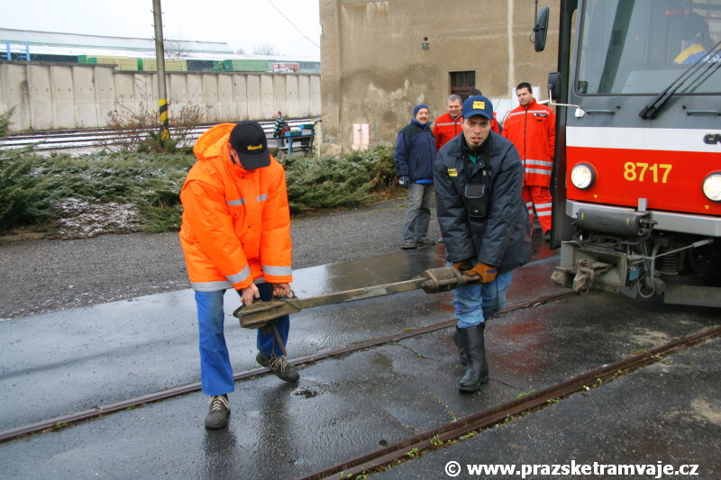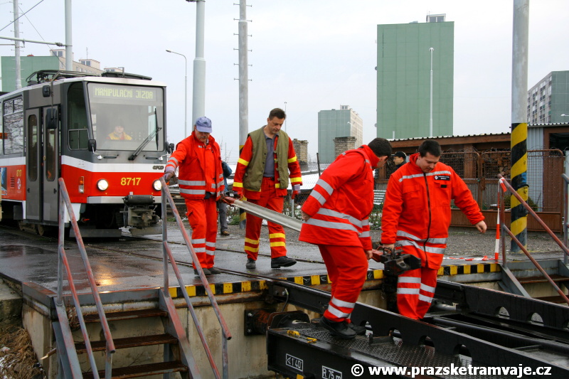 Skládání tramvaje Škoda 14T ev.č.9117 na pražské koleje 27.1.2007