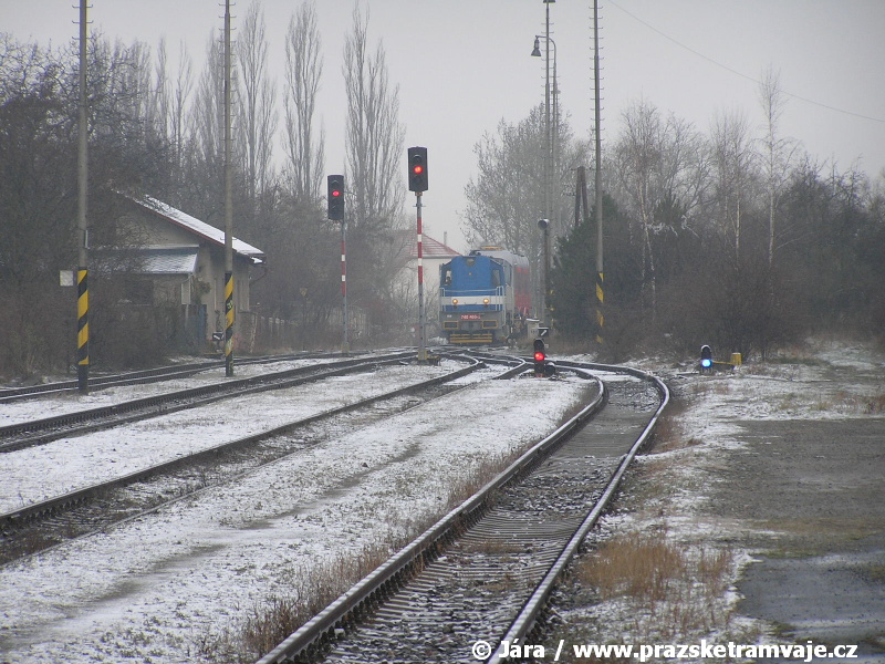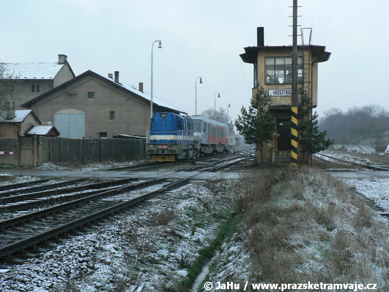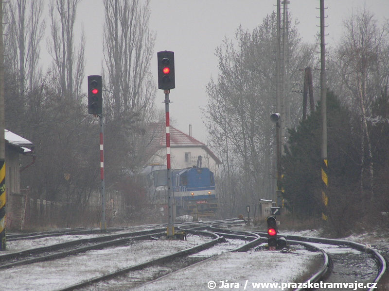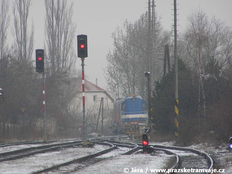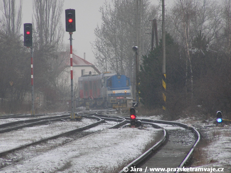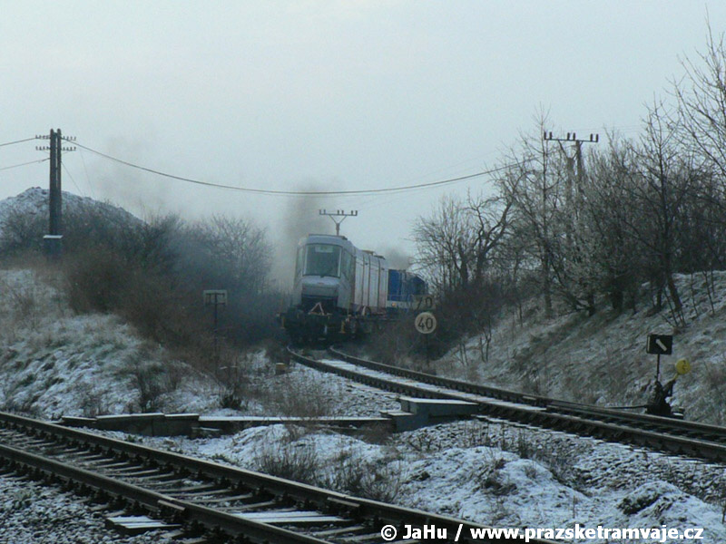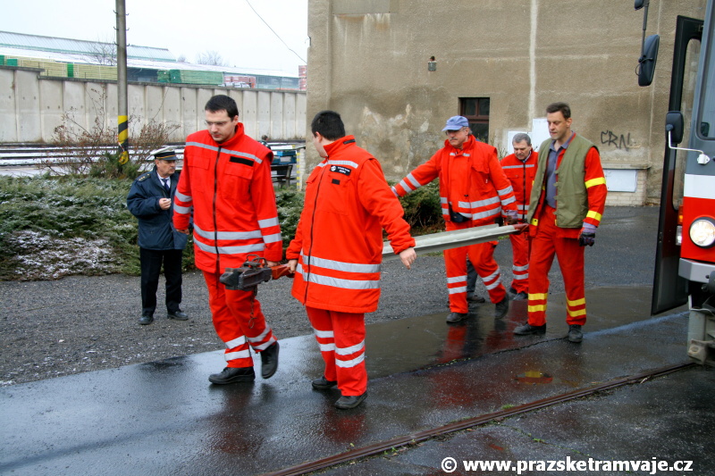 Skládání tramvaje Škoda 14T ev.č.9118 na pražské koleje 1.2.2007