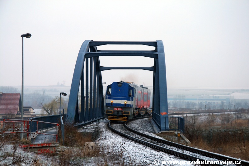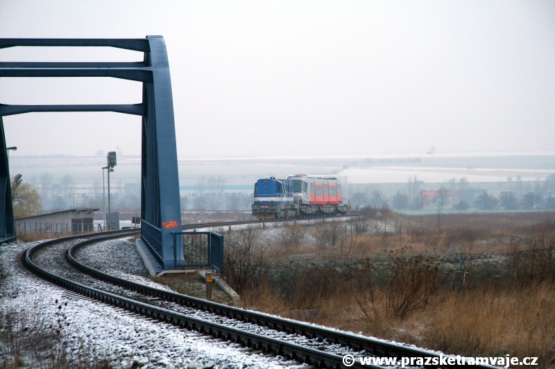 Nakládání tramvaje Škoda 14T ev.č.9111 na železniční vozy 9.2.2007