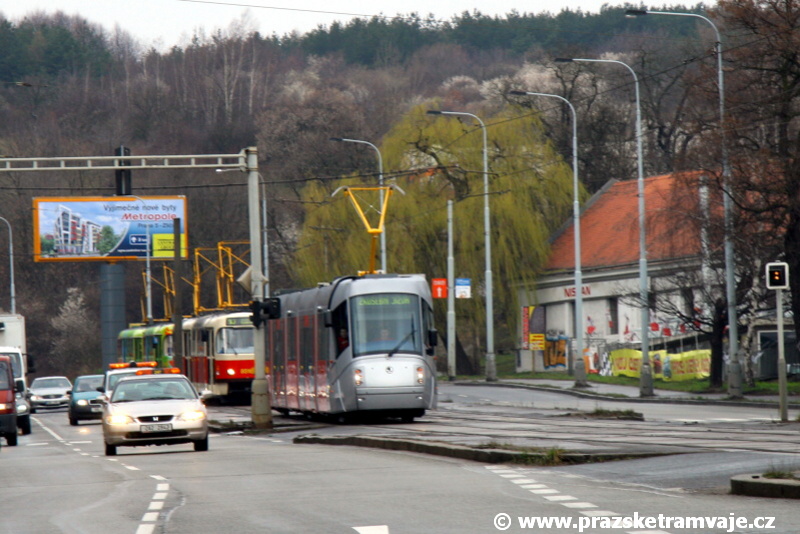 Návrat vozu Škoda 14T ev.č.9127 na pražské koleje 10.3.2015