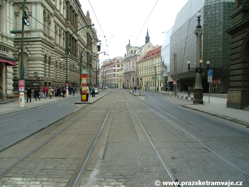 projely poslední tramvaje 25. července 2010. Po rozsáhlé rekonstrukci celé Národní a Spálené ulice