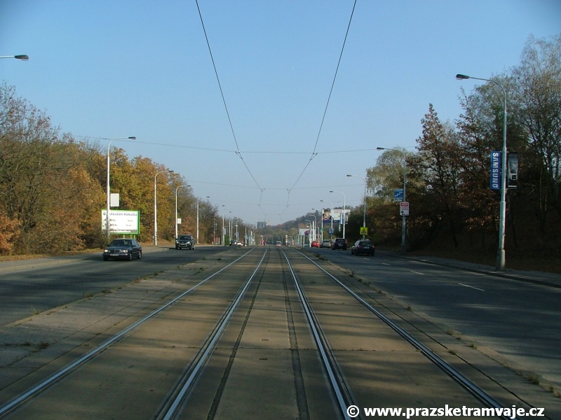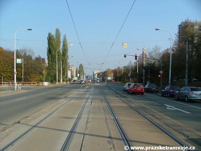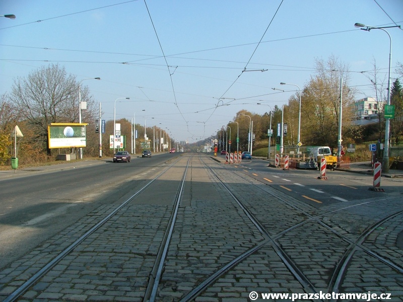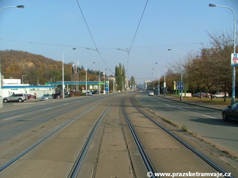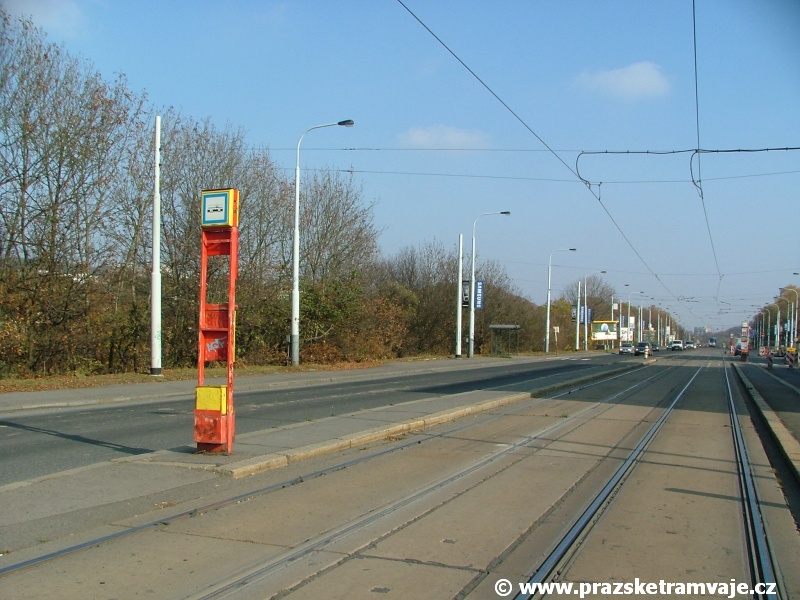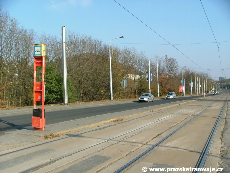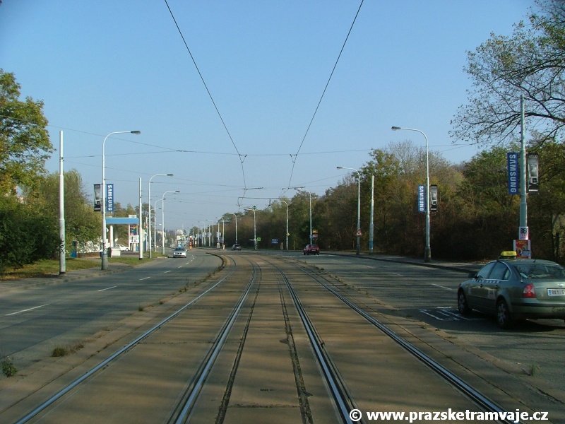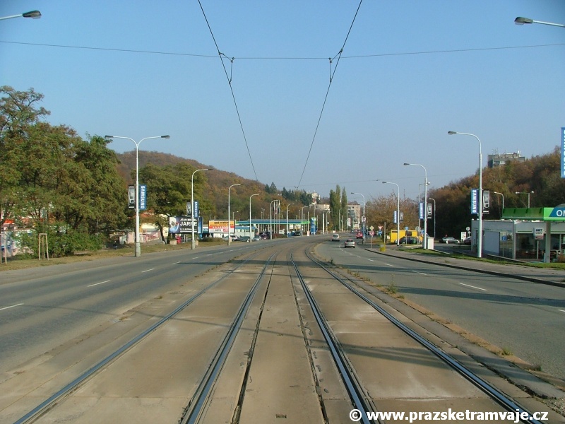 tedy bezprostředně za světelnou křižovatkou s nájezdovou rampou mimoúrovňové křižovatky s Kukulovou ulicí, za prostorem zastávek Motol a