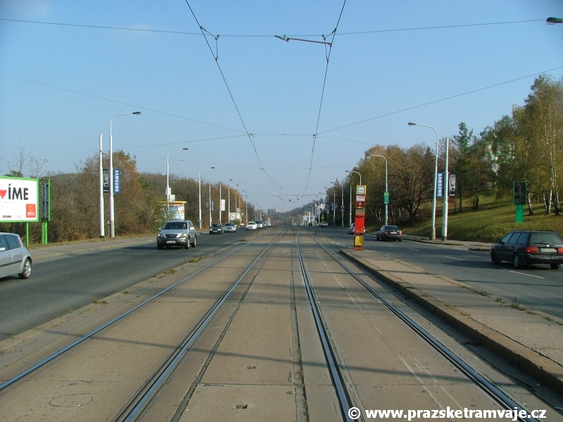 ostrůvky jsou umístěny vstřícně proti sobě. Již od zastávek tramvajová trať klesá v přímém úseku až ke křižovatce s odbočku Zahradníčkovy ulice, za níž