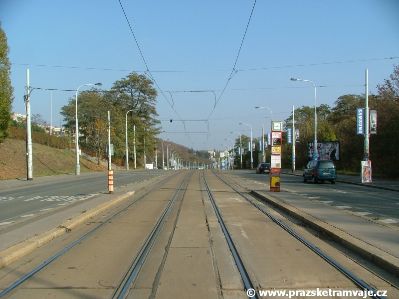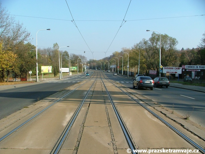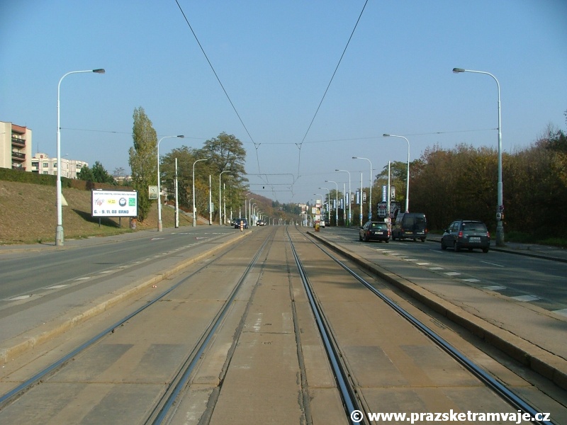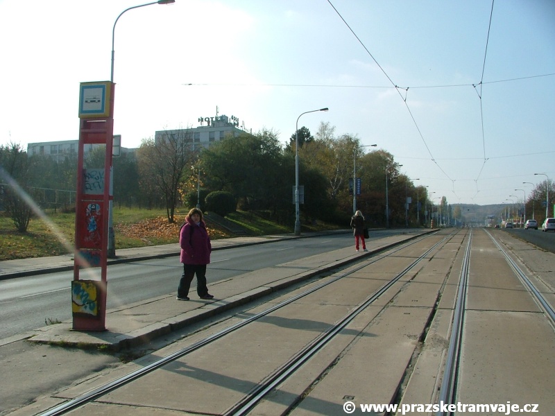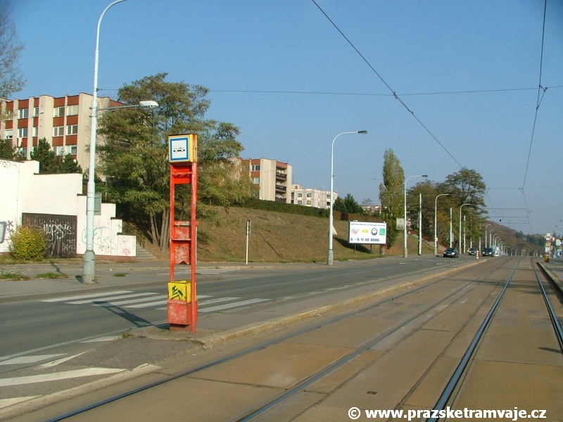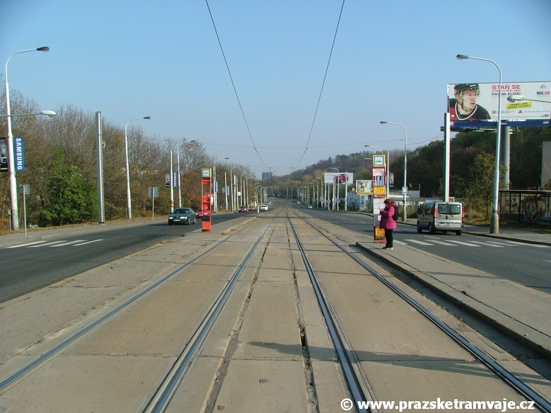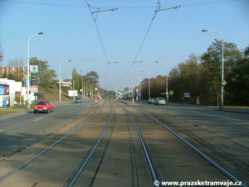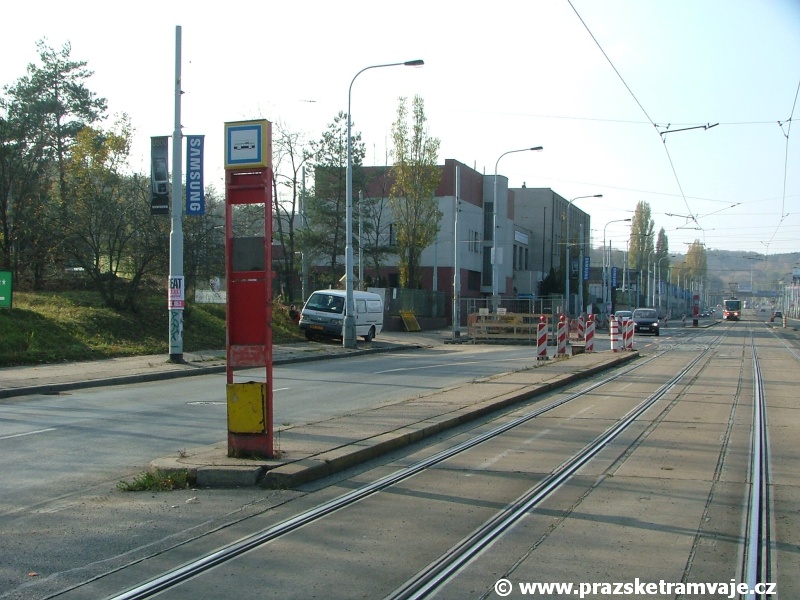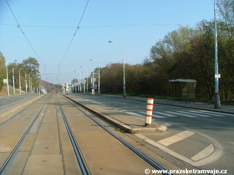 dva nácestné, třetí určený pouze jako nástupní se skrývá až za sjezdovou výhybkou výjezdového trojúhelníku z areálu vozovny Motol. Tramvajová trať se pozvolna