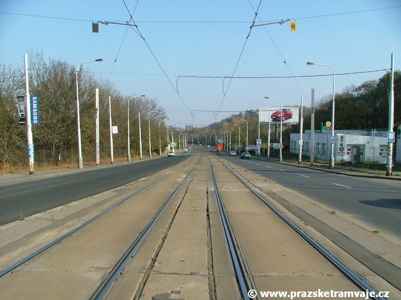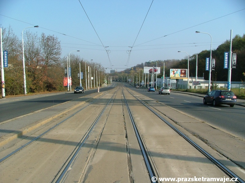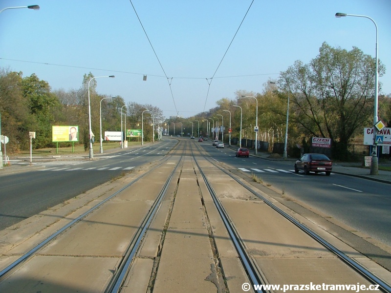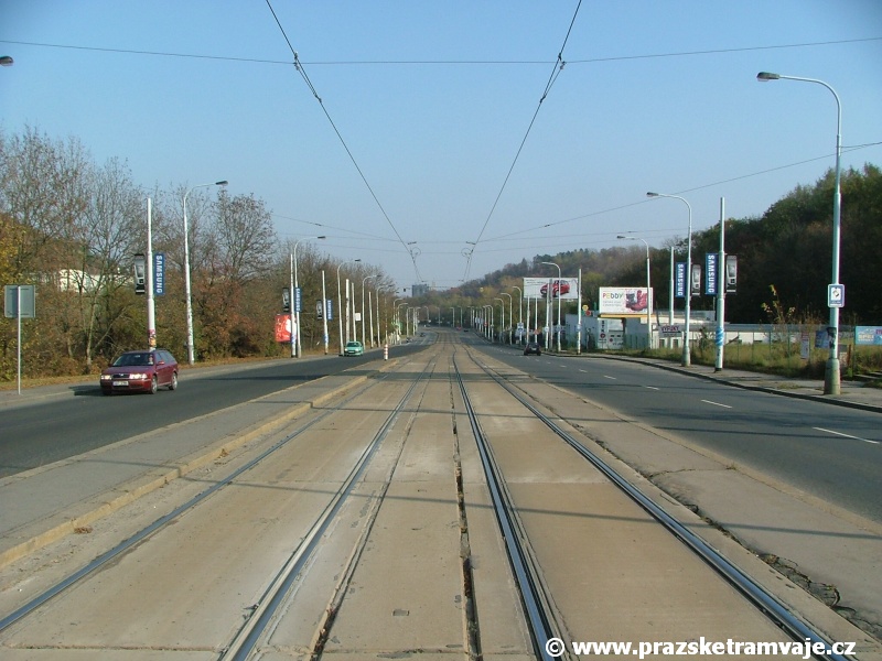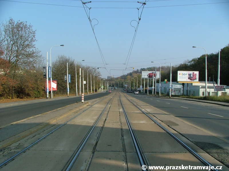 z výrobního závodu ČKD na Zličíně. Tramvajová trať se mírně vychyluje, aby vznik prostor pro zřízení ostrůvků zastávky Vozovna Motol. Jsou celkem tři,