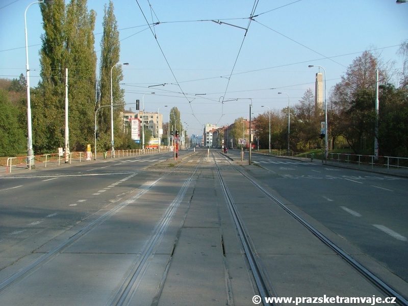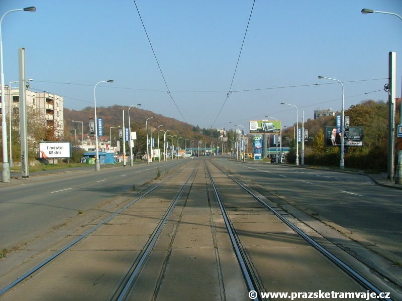 betonovými trubkami. V levém oblouku pokračuje tramvajová trať až k vyústění ulice Nad Hliníkem, za níž se opět napřimuje a následuje