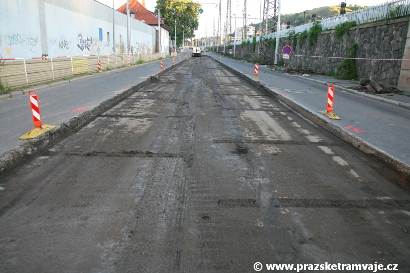 Oprava byla provedena na dvou cca 100m dlouhých úsecích mezi zastávkami ČSAD Smíchov a Smíchovské nádraží. Spočívala v sanaci podloží pomocí odfrézování podkladní vrstvy a pokládce nové živice, na níž byly znovu položeny původní vytěžené panely. Současně byly vyměněny kolejnice B1 v dalších několika úsecích poblíž Lihovaru za nové. Přemostění železniční tratě do Berouna se dočkalo podfoukání, tedy výškového urovnání panelů v obou obloucích. V Hlubočepích došlo ještě k vyrušení dilatací v prostoru u nástupní zastávky Hlubočepy a lokálním opravám panelů. Po dobu výluky bylo deponováno cca 24 vozů z vozoven Vokovice /garantované nízkopodlažní spoje/ a Pankrác ve smyčce Sídliště Barrandov, které zajišťovaly provoz na nepřetržité náhradní tramvajové lince 32. Vnější kolej sloužila pro odstavování vozů, vnitřní kolej byla průjezdná a na prostřední koleji smyčky čerpali řidiči přestávky.