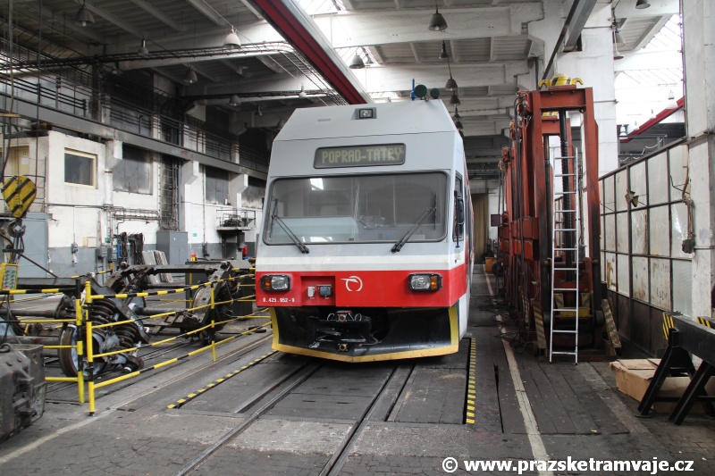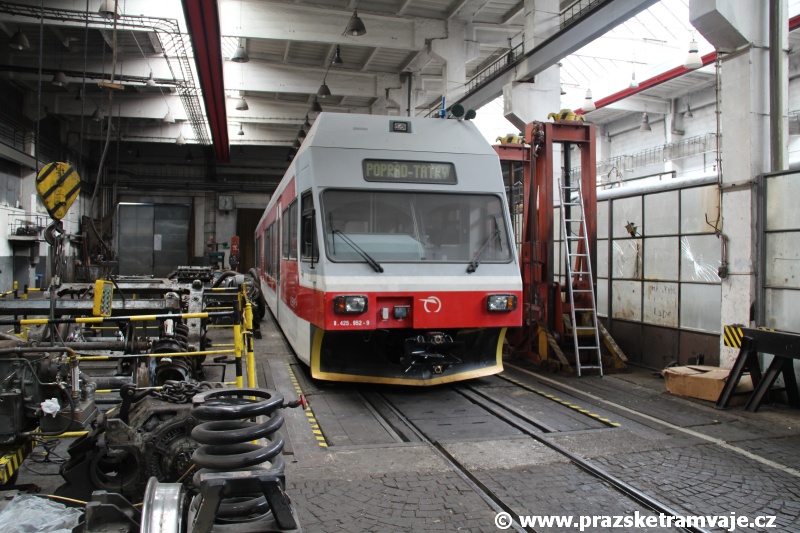 V průběhu uplynulých měsíců od naší poslední návštěvy plameny hořáků autogenu nemilosrdně ze světa sprovodily obě "šedesátkové" električky 420 962-3 a 420 966-4. Jednotka 420 962-3, která již od roku 2009 stála mimo zatrolejovanou část kolejiště byla oficiálně poslední provozní jednotkou řady 420, která byla ve stavu TEŽ, ač tomu její vzhled vůbec nenasvědčoval. Na jednotce 420 953-2 probíhají v prostorech depa velmi zvolna práce, které jí mají změnit v provozní muzejní exponát. Takřka desetiletí odstavení na nekrytých plochách se však na ní podepsalo více, než všichni předpokládali a během uplynulého roku vzhledová část její opravy příliš nepokročila. Přesto se podařilo uskutečnit vše proto, aby po papírové stránce mohlo trojče vyjet vlastní silou na trať. Byla provedena tlaková zkouška vzduchojemů, sepsaná zpráva o uskutečněné elektrorevizi, provedená technická kontrola... Druhá ze zbývajících jednotek, 420 959-9 zatím stojí vystavena drsnému tatranskému podnebí. Zda z ní vznikne druhá muzejní trojička, aby bylo případně možné vytvářet soupravu trojiček tak, jak to bývalo v minulosti běžné, není po předchozích zkušenostech příliš pravděpodobné. |