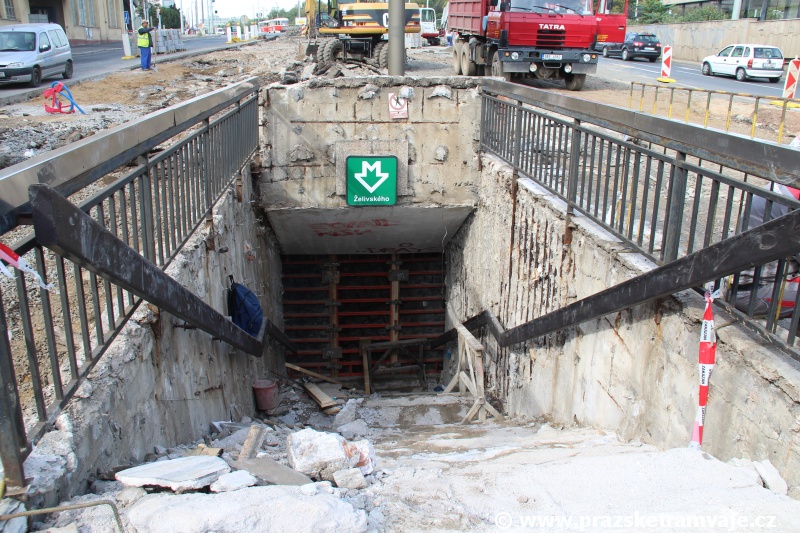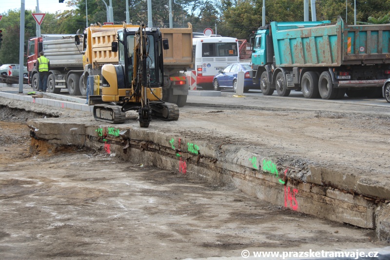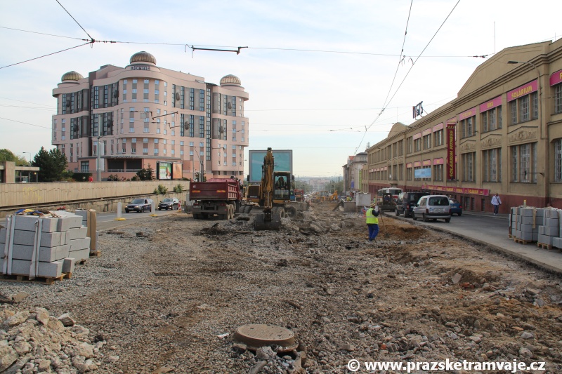 Počínaje 12. zářím 2012 došlo k zahájení trhacích prací velkoplošných panelů BKV. Celý úsek byl rozdělen na 2 částí v poměru cca 40 ku 60%. Větší část přiléhající ke křižovatce Vinice byla v režii Dopravního podniku společně s Eurovií, vrchní, kratší zato však komplikovanější část byla v režii Hanse Wendela. Ke 14. září zbývalo vytrhat již jen krátký úsek v zastávce Vozovna Strašnice, který však musel ještě nějaký čas zůstat nedotčen, neboť sloužil jako mezideponie materiálu.