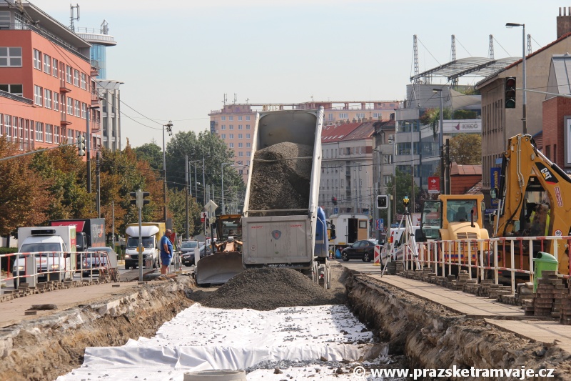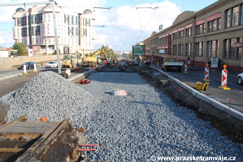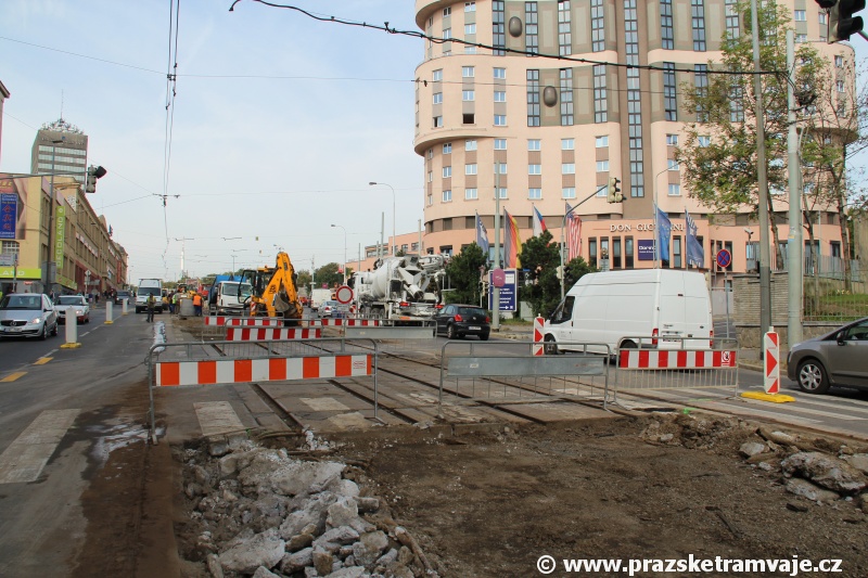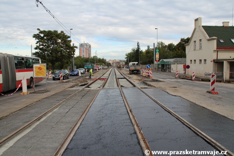 Již třetí den po začátku výluky se na stavbě v režii Hanse Wendela pokládaly s pomocí speciálního přípravku první pražce a pouhých pět dní po začátku výluky začala pokládka nových kolejových polí, tvořených bezžlábkovými kolejnicemi S49 na betonových pražcích i u Dopravního podniku.