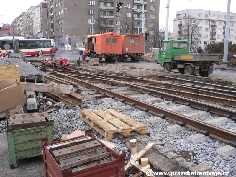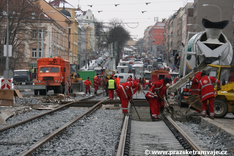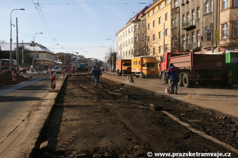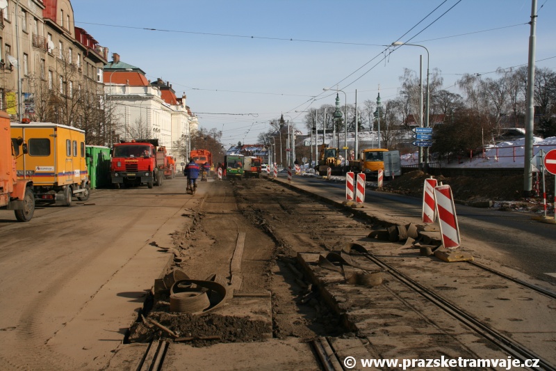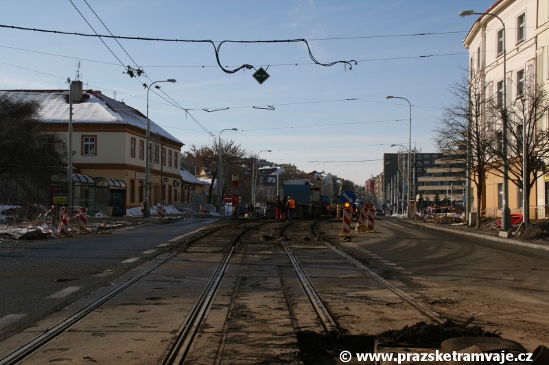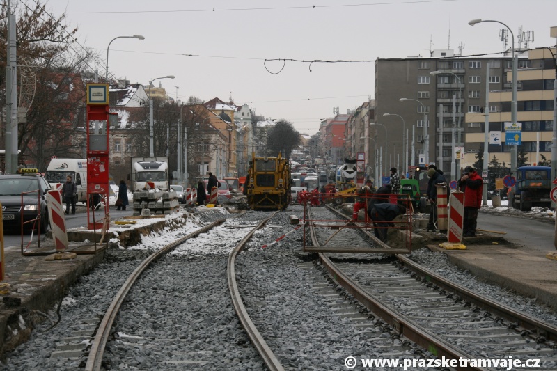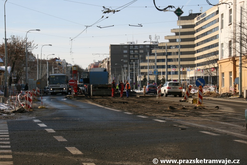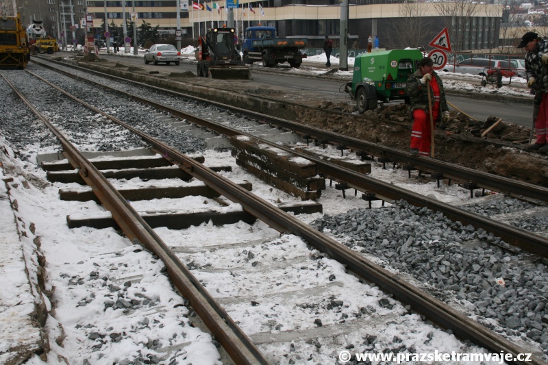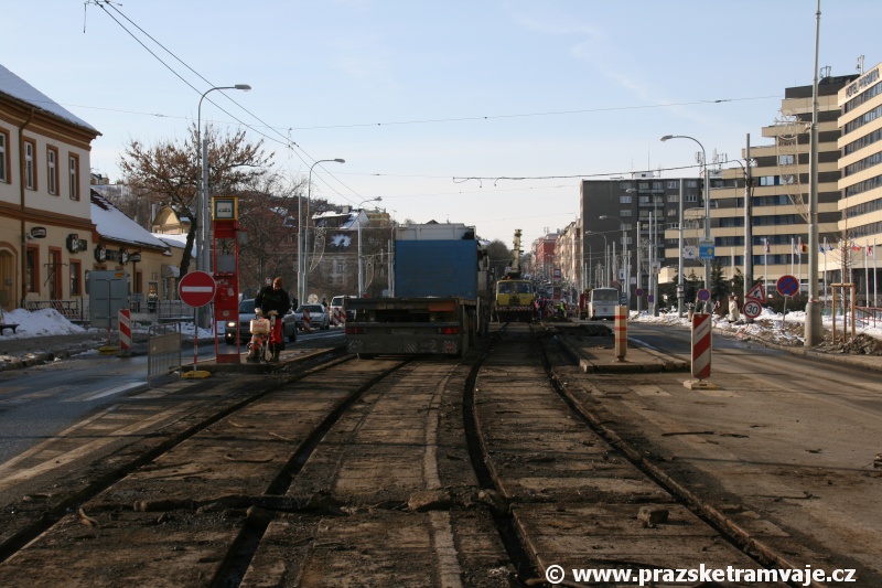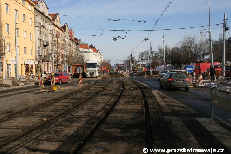 Rekonstrukce tramvajové tratě v úseku mezi ulicemi Pod Královkou a Myslbekova započala přesně 1. února. První den probíhaly destrukční práce na části mezi křižovatkou Malovanka a Vaníčkovou ulicí, kdy byla odstraněna dlažba a později i kolejové křížení z části křižovatky Malovanka , v dalších dnech došlo k likvidaci původního tělesa v celém úseku kromě přejezdů, na kterých bylo nutné zachovat provoz autobusů náhradní dopravy.