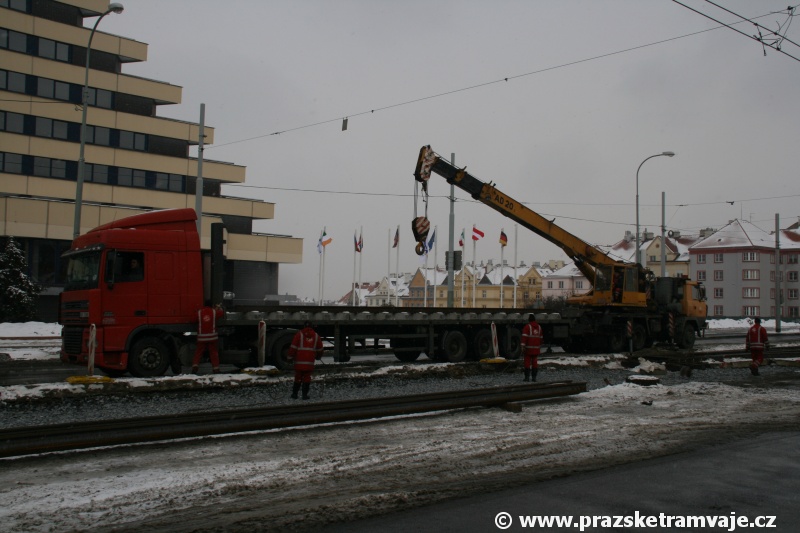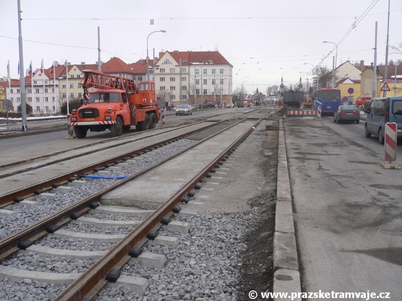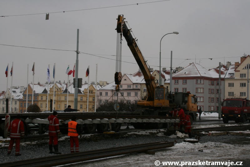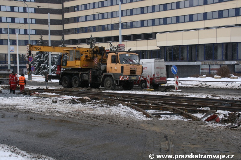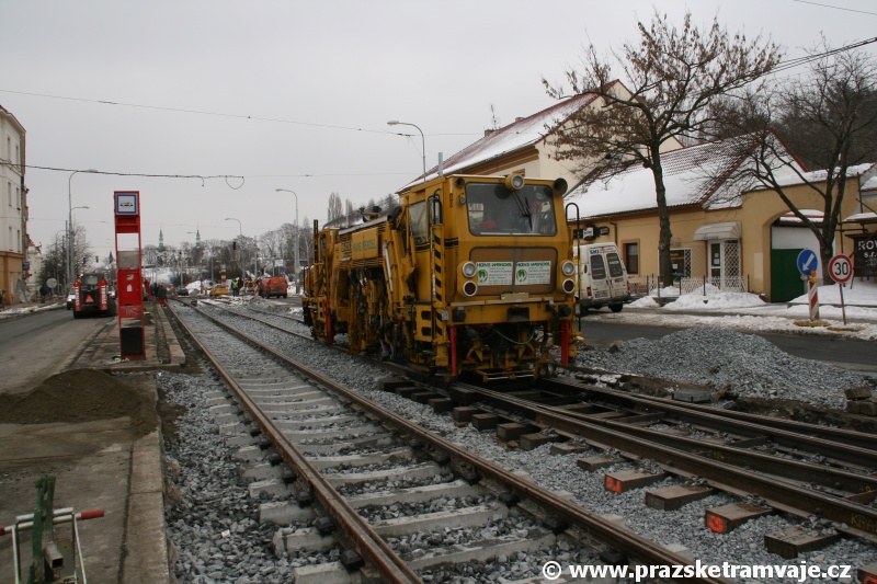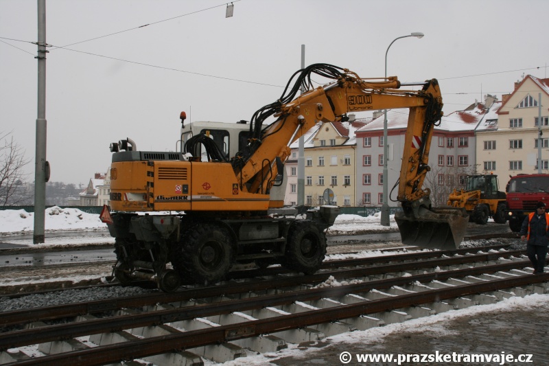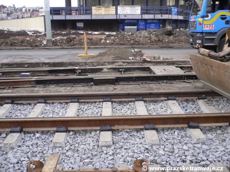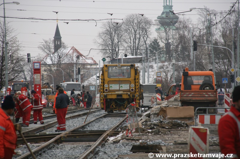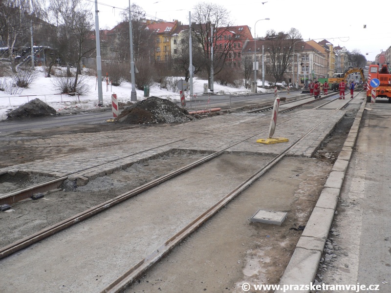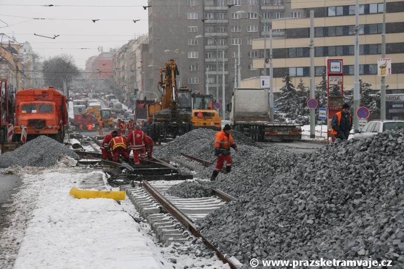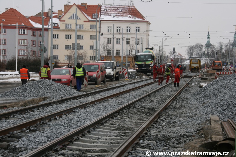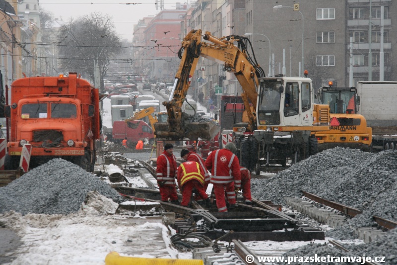 Dne 9.února 2010 pracuje vrchní stavba na očišťování panelů VÚIS, na kterých leží výjezdová konstrukce smyčky Královka a vrcholí přípravy na kladení nové konstrukce. Koncový úsek před křižovatkou s ulicí Pod Královkou připomíná zatím spíše skládku stavebního materiálu, nachází se zde totiž vybouraná betonová deska původního podkladu. Přestože napadne další porce sněhu, leží již 12. února nová křižovatková konstrukce upevněna na svém místě.