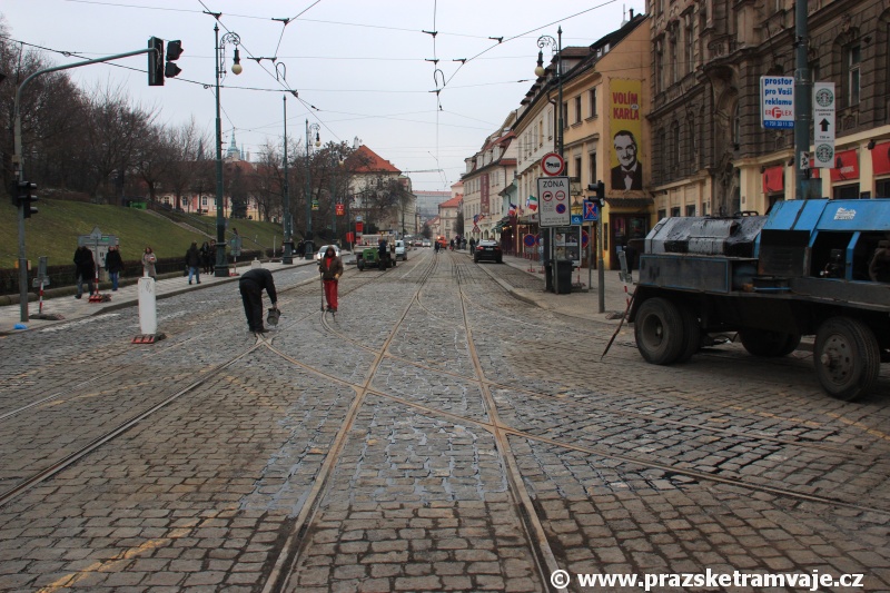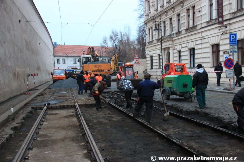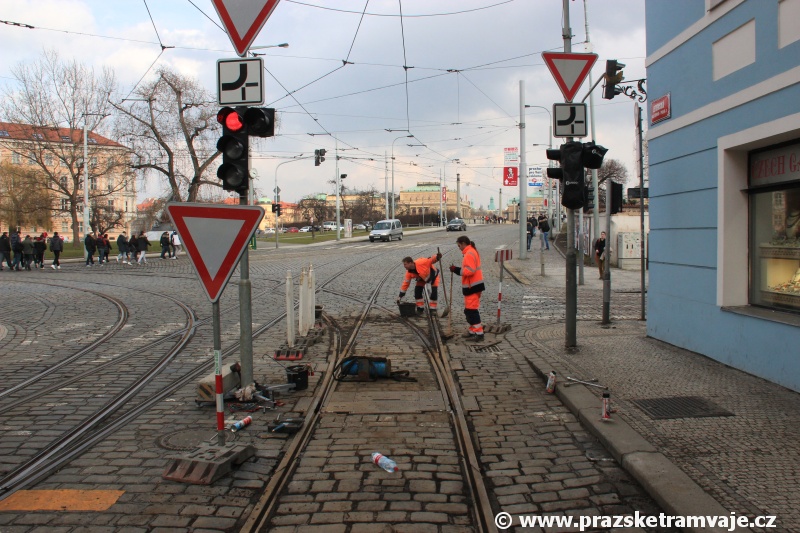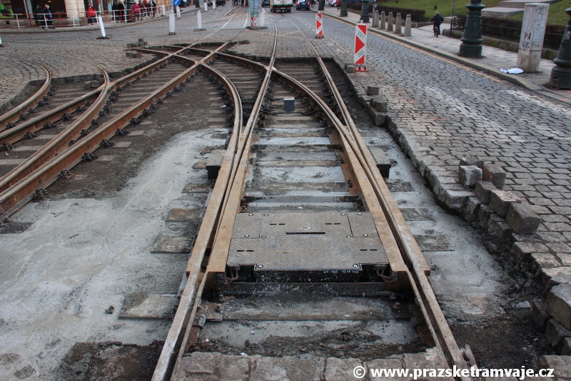 Součástí akce byla i výměna rozjezdové výhybky křižovatky dolní Klárov z Letenské ulice.