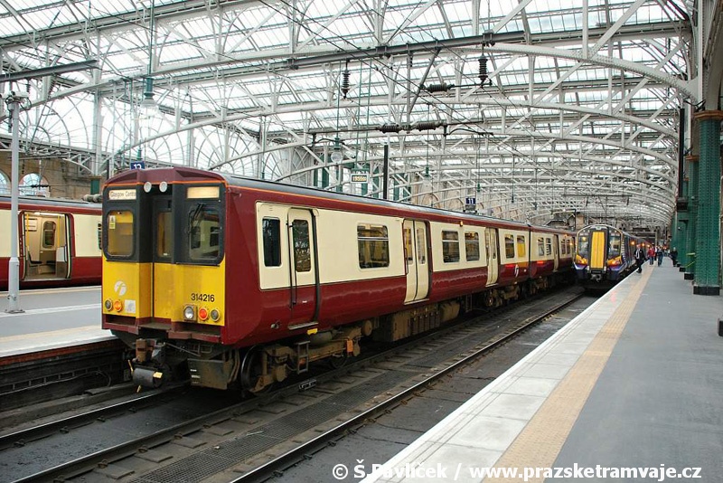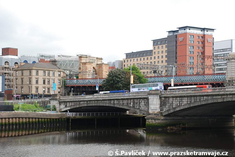 Případně nějakou podobnou hrůzou. Jako, místní vlaky pro mne mají kouzlo, ale netvrdím, že jsou hezké. | 13.6.2014 Nádherné je ale místní nádraží: Glasgow Central Station. Sice je zapasované v okolní novější zástavbě... | 13.6.2014 ...ale hlavně od řeky Clyde vypadá opravdu krásně. | 13.6.2014 Glasgow Central Station. | 13.6.2014