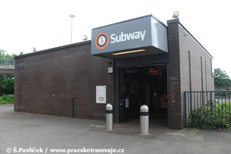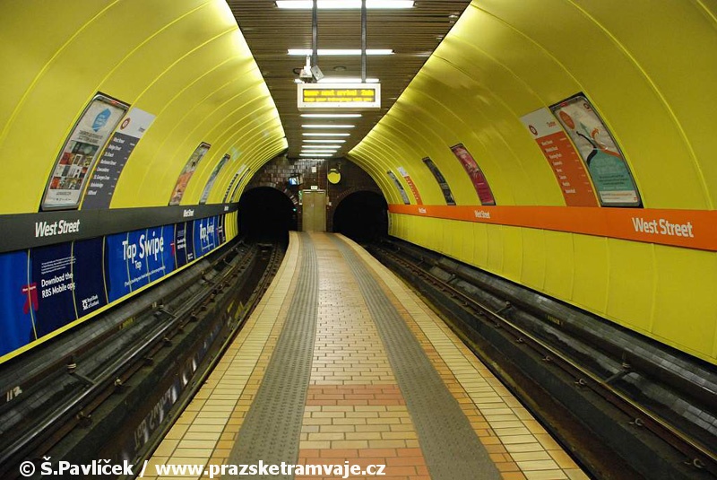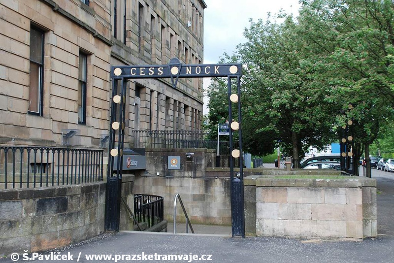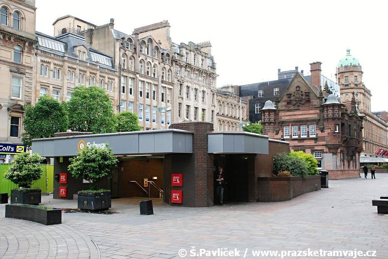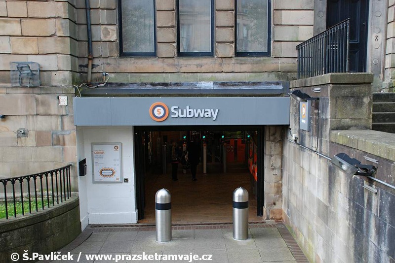 Ale už probíhají modernizace a rozšiřování stanic. Původní ostrovní nástupiště je zachováno jen pro jednu kolej a po straně druhé koleje se ve zdi vyrube nástupiště nové. | 13.6.2014 Podíváme se na stanice metra zvenku. Tohle je takový základní typ stanice, použitý v průmyslových částech Glasgow, které jsou nyní spíše opuštěné, protože po krachu místního loďařského průmyslu je dost velká část města skoro úplně mrtvá. | 13.6.2014 Dále tu jsou tyto historické stanice docela vkusně zasazené do místní zástavby. | 13.6.2014 Vstup do stanice. | 13.6.2014 A pak tu jsou zmodernizované stanice jako je tato. | 13.6.2014