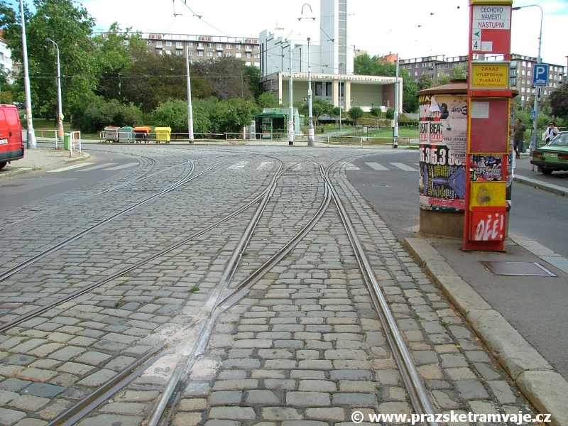 Čechovo náměstí mohly vlaky vzájemně předjíždět, byly zde v průběhu roku 1928 vybudovány dva kolejové přejezdy, umožňující