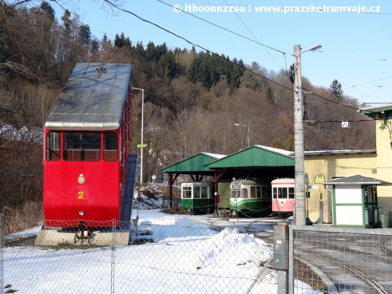 (v době návštěvy mimo provoz), tak do skály proražené výtahy. Z dopravního hlediska lze pozitivně hodnotit stav tratí i vozů, symbiózu