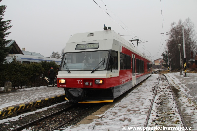 Elektrická jednotka Tatranských Elektrických Železnic 425 953-7 ještě ve starém laku na Štrbském Plese. | 15.1.2014 Elektrická jednotka Tatranských Elektrických Železnic 425 955-2 ve Starém Smokovci s novou podobou vnějšího laku. | 15.1.2014 Hnací modul jednotky 425 955-2 v nové podobě vnějšího laku. | 15.1.2014 Porovnání čel jednotek řady 425 s novou a starou podobou laku. | 15.1.2014